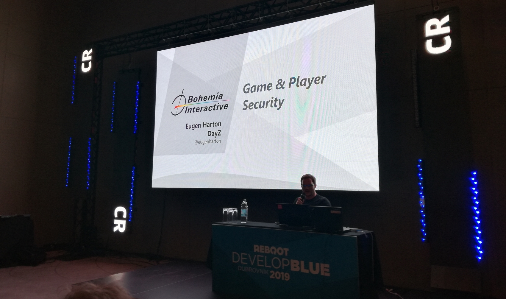 Ich blätterte durch das Konferenzheft und sah, dass Eugen Harton, der Projektleiter des DayZ-Projekts, bald einen Vortrag halten würde. Also dachte ich: „Hey Leute, wisst ihr, was cool wäre? Wenn wir dorthin gingen und einfach in der ersten Reihe sitzen. Lass uns einfach nur da sitzen und starren. “Ich war voll darauf vorbereitet, dass die Leute einfach nein sagen würden. Jedoch...