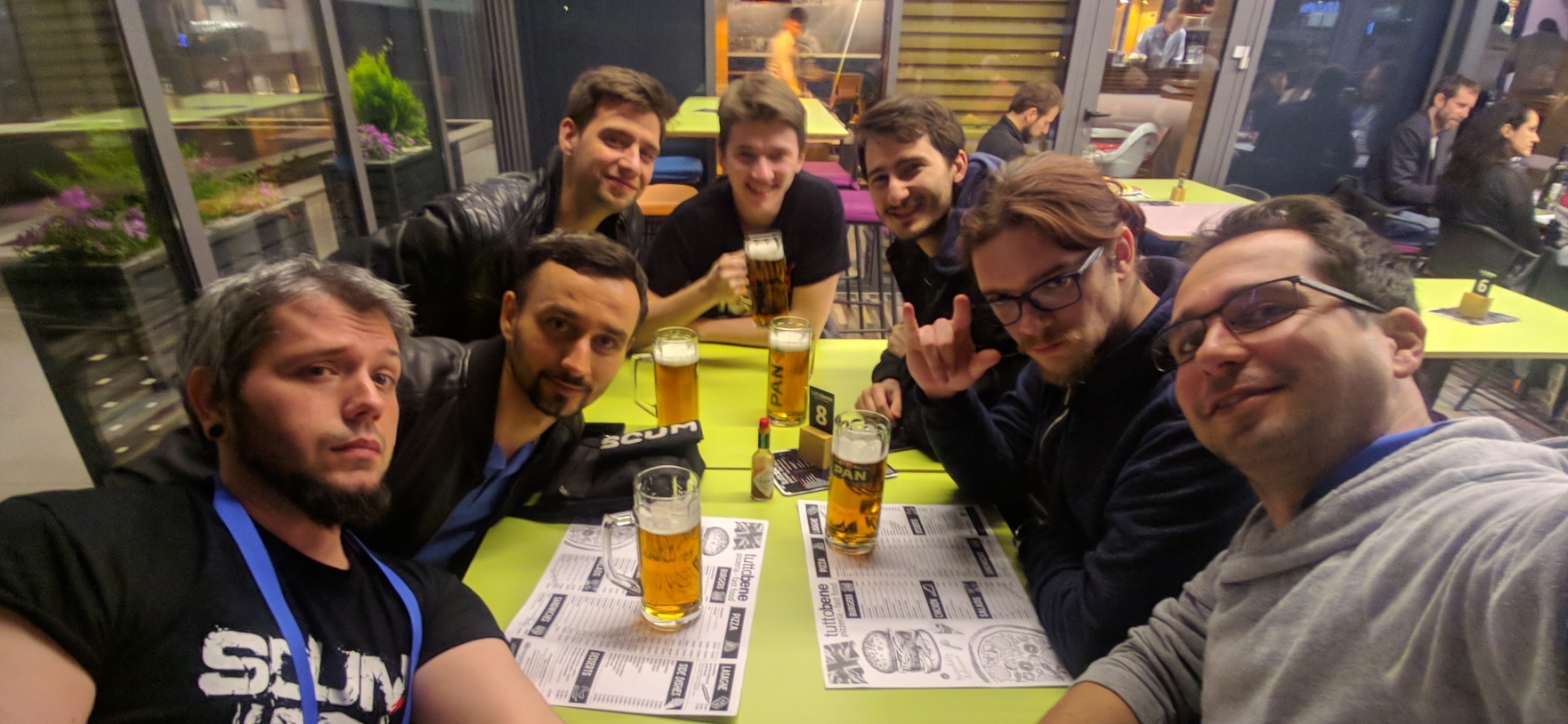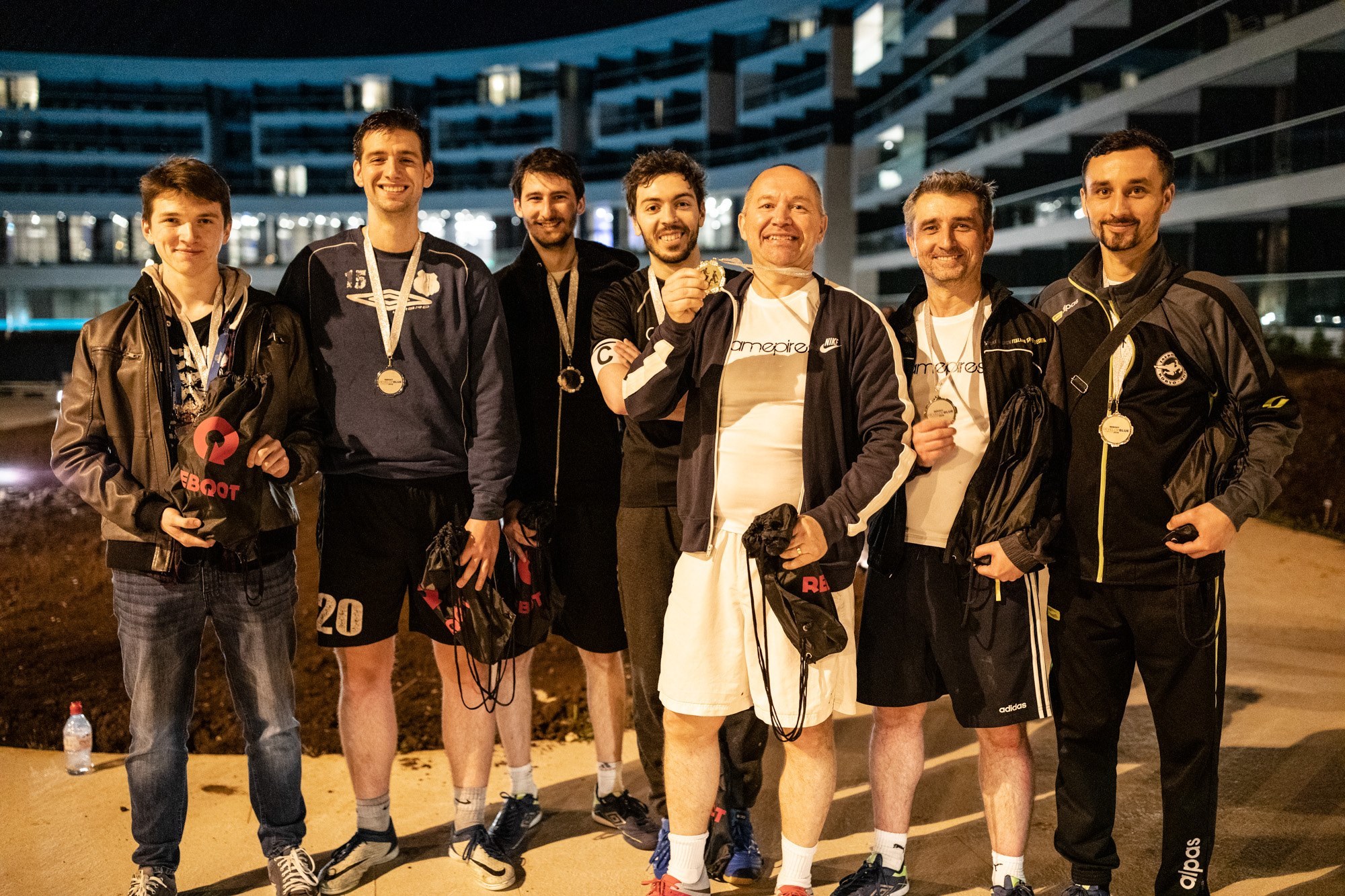 Das Finale des Fußballturniers fand an diesem Abend statt und wir waren alle aufgeregt. Zuerst spielten wir gegen Bongfish, den Hauptsponsor der gesamten Konferenz. Wir haben gewonnen, aber leider erinnern wir uns nicht an die Punktzahl - die Spieler spielten gut, und die Zuschauer waren zu betrunken, um sich daran zu erinnern. Dann haben wir gegen Croteam gespielt und verloren. Es tut immer noch zu sehr weh, darüber zu sprechen. Also sind dass dies die einzigen Informationen, die Sie erhalten. Silber ist auch okay denke ich. Das ist gut. Wir sind nicht salzig. Wir haben ihre Autos nach dem Spiel definitiv nicht zerkratzt.
