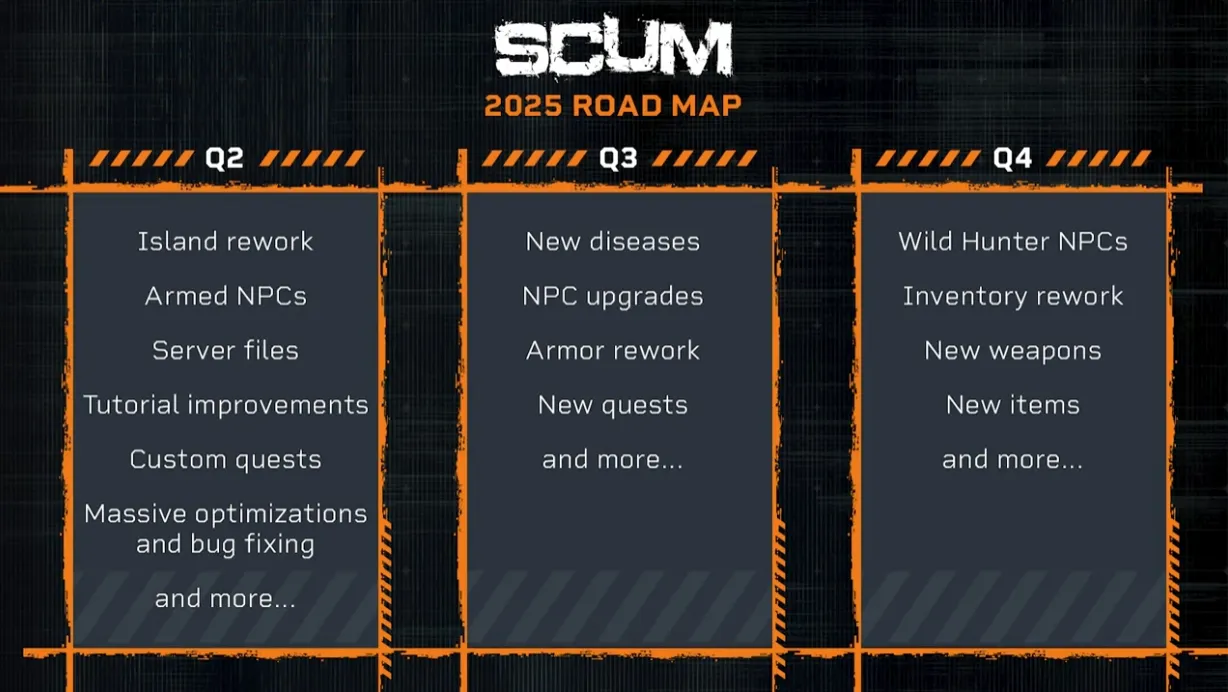 Bei SCUM steht ein aufregendes Jahr an. Der Early Access Status wird verlassen und die Version 1.0 erscheint bald. Aber auch danach wird sich einiges verändern, wie die Entwickler in dem Fahrplan für 2025 verraten. Doch auch da ist noch vieles offen. Es wurden bisher nur einige geplante Schritte verraten. Möglich, das es da noch andere schöne neue Inhalte aber auch Verbesserungen und Optimierungen geben wird. Schauen wir uns das Ganze mal näher an: