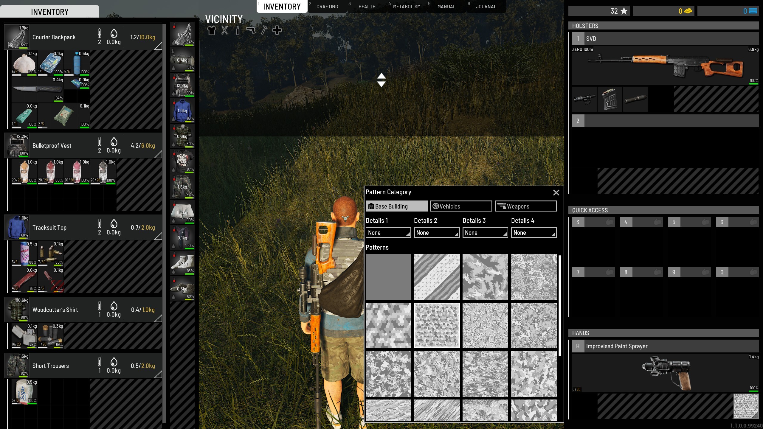 Vor dem Update funktionierte die Körperpanzerung so, dass sie lediglich den Schaden reduzierte, der bei einem Treffer entstand. Jetzt ist die Körperpanzerung ein eigenständiges Material und funktioniert so, wie sie sollte. Bei einem Treffer mit einem kleineren Kaliber reduziert die Panzerung die Energie und versucht, das Eindringen der Kugel zu verhindern, wobei sie selbst Schaden nimmt. Die Wirksamkeit hängt von der Haltbarkeit und dem Typ der Schutzweste ab. Wenn die Kugel in einem anderen Bereich als dem angegebenen ungefähren Bereich auftrifft, wird sie nicht von der Schutzweste abgefangen und die gesamte Energie der Kugel wird übertragen.