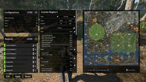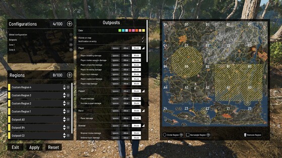 Ihr habt jetzt eine richtige Benutzeroberfläche, die euch eine Vorschau zeigt, welche Einstellungen auf welche Zone angewendet werden, eine enorme Verbesserung der Benutzerfreundlichkeit. Ihr könnt Zonen direkt mit der Maus auf der Karte zeichnen, sodass ihr Zahlen nicht mehr hin- und her eingeben müsst.