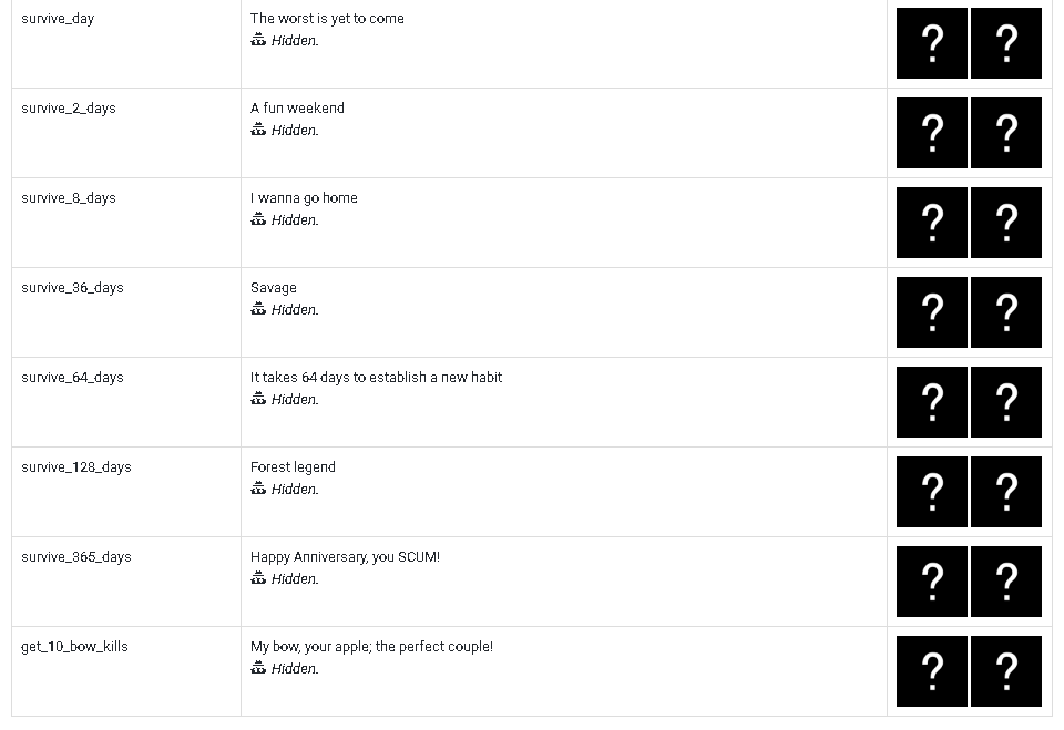 Das Achievement-System in SCUM ist nun schon einige Wochen alt. Bereits damals haben die Entwickler angekündigt, neue Erfolge dem Spiel zeitnah hinzuzufügen. Nun sind 8 Achievements auf der Steam Database Webseite sichtbar, die bald kommen könnten. Auch an den Statistiken dafür wurde fleißig gearbeitet. Wir fassen zusammen: