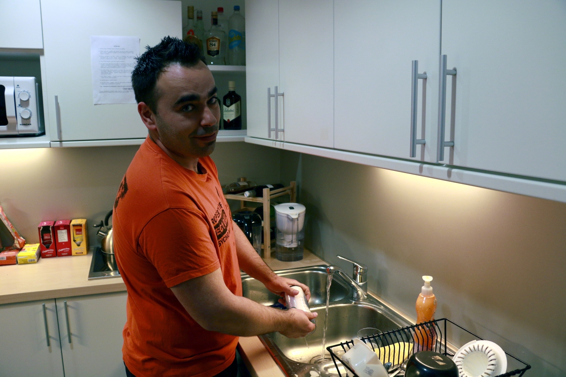 Ein völlig offenes und überhaupt nicht gestelltes Foto von Mirko, der meine Kaffeetasse wäscht, obwohl sie schon sauber war