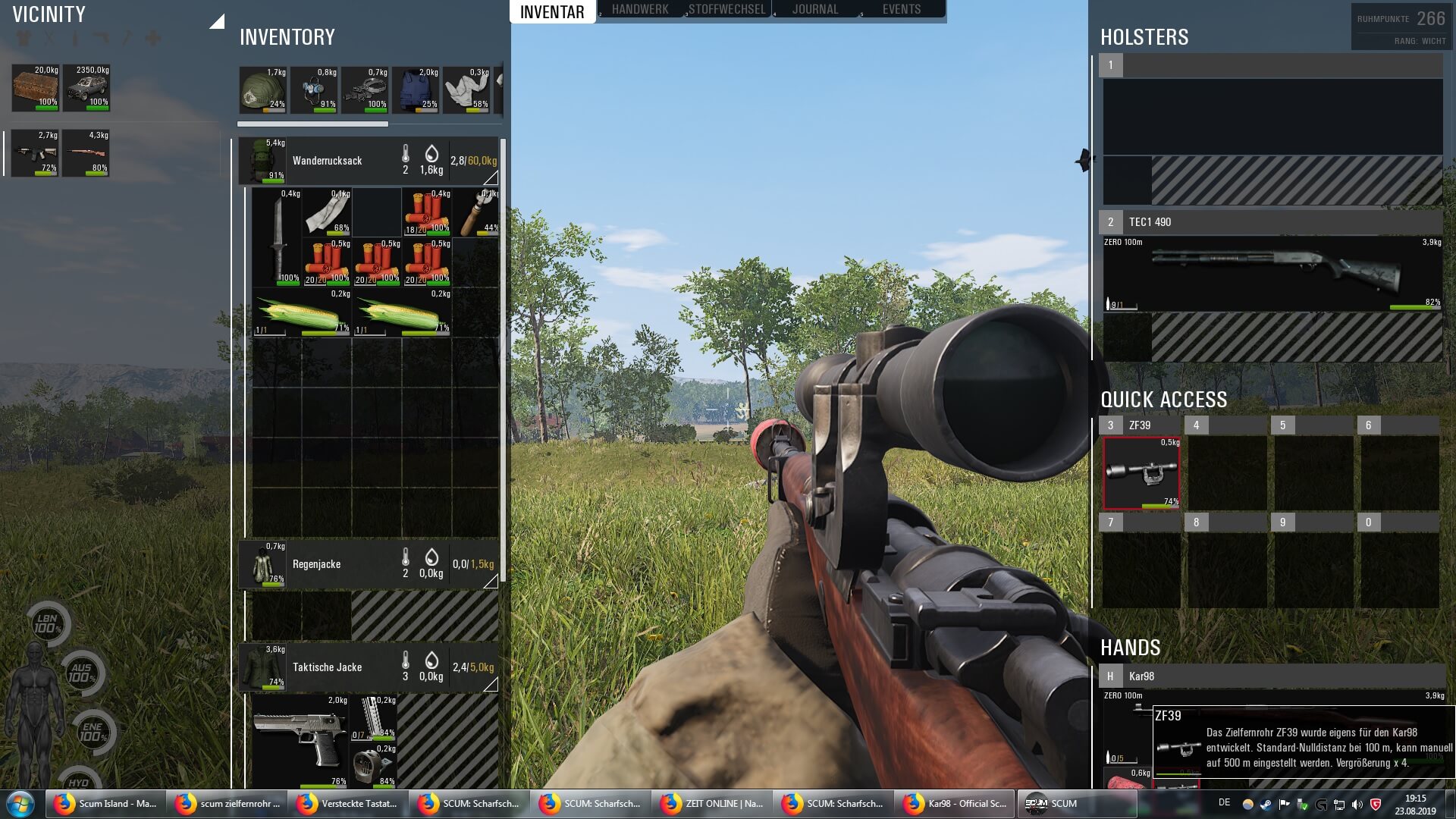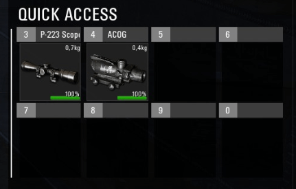 Es gibt auch einen Tipp zur schnelleren Montage und zum Abbau des Zielfernrohrs. Legt euer Zielfernrohr einfach im Schnellzugriff per Drag & Drop das Inventars ab. Braucht ihr das Scope nun in einer bestimmten Situation, könnt ihr es einfach über den Schnellzugriff montieren (sofern ihr nicht mit der Waffe am zielen seid) und später wieder demontieren. Die Montage / Demontage erfolgt, wenn ihr wie in unserem Beispiel dann die Taste "3" auf der Tastatur drückt.