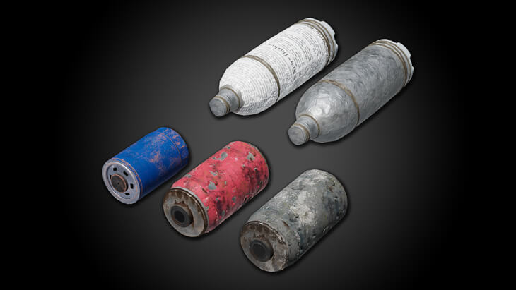 Improvisierte Schalldämpfer aus verschiedenen Teilen.