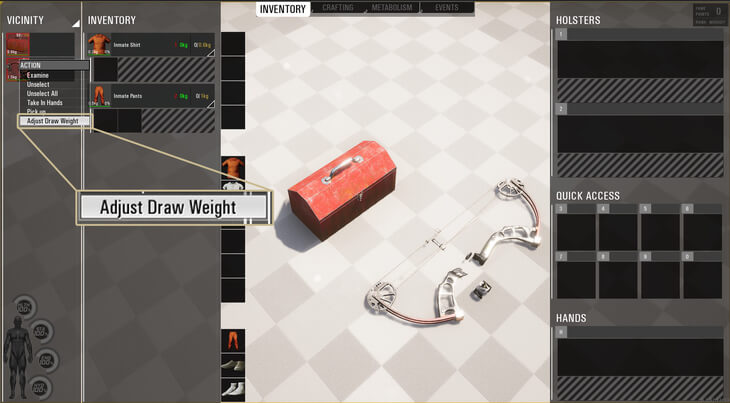 Wenn ihr nun den Compound-Bogen und eine Werkzeugkiste findet, könnt ihr das Ziehgewicht genau an eure Charakter-Fähigkeiten anpassen.