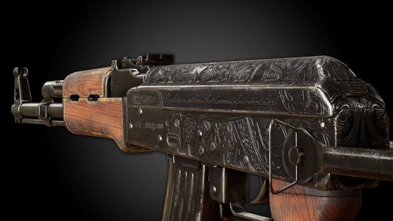 Und hier ist ein Jubiläum AK47 mit einigen speziellen Gravuren: