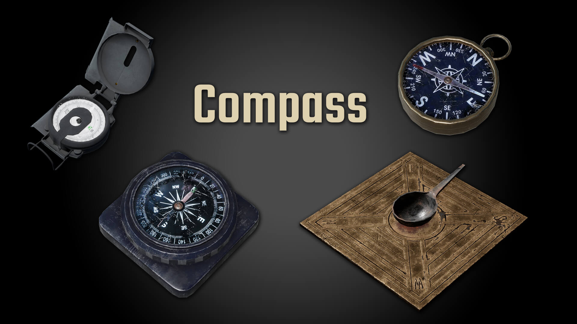 - Es gibt 4 Stufen von Kompassgegenständen im Spiel. Sie unterscheiden sich von der Menge der Informationen, die man von ihnen lesen kann.