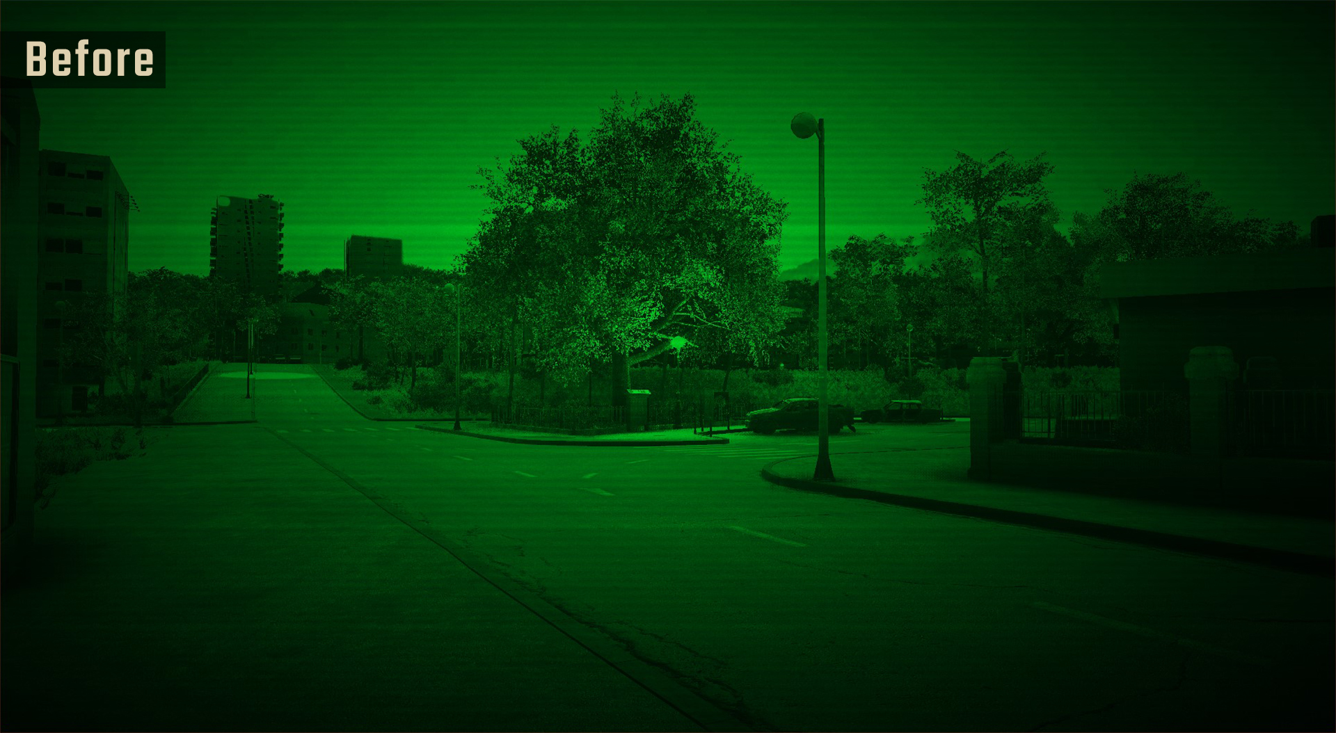 Wir haben die Nachtsicht-Brillen überarbeitet, der Kontrast war vorher zu groß und man konnte Spieler auf viel größeren Distanzen sehen, als man sollte.