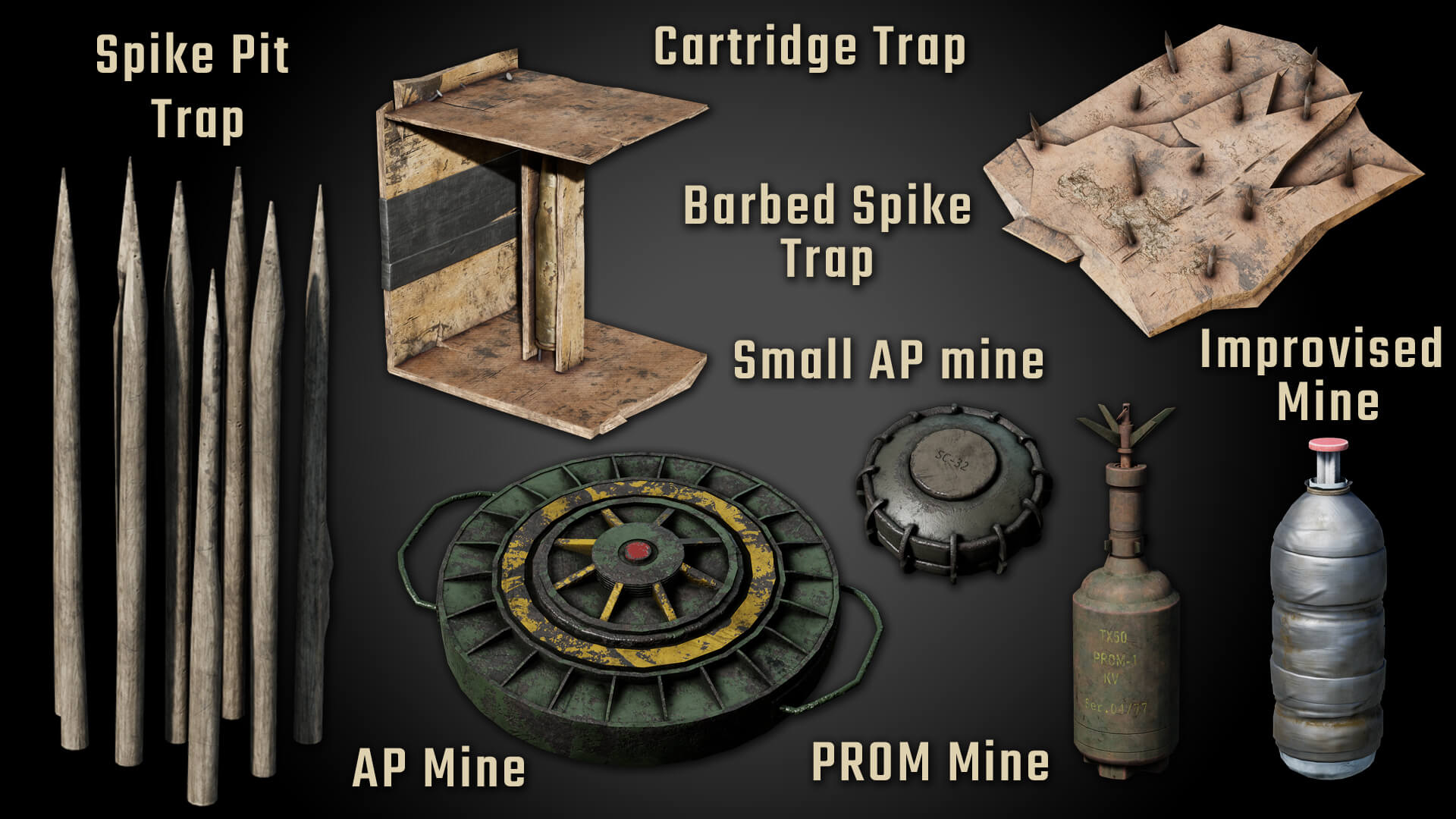 Es gibt verschiedene Arten von Auslösern, mit denen ihr eure Fallen basteln und ausrüsten könnt. Weitere werden in Zukunft hinzukommen.