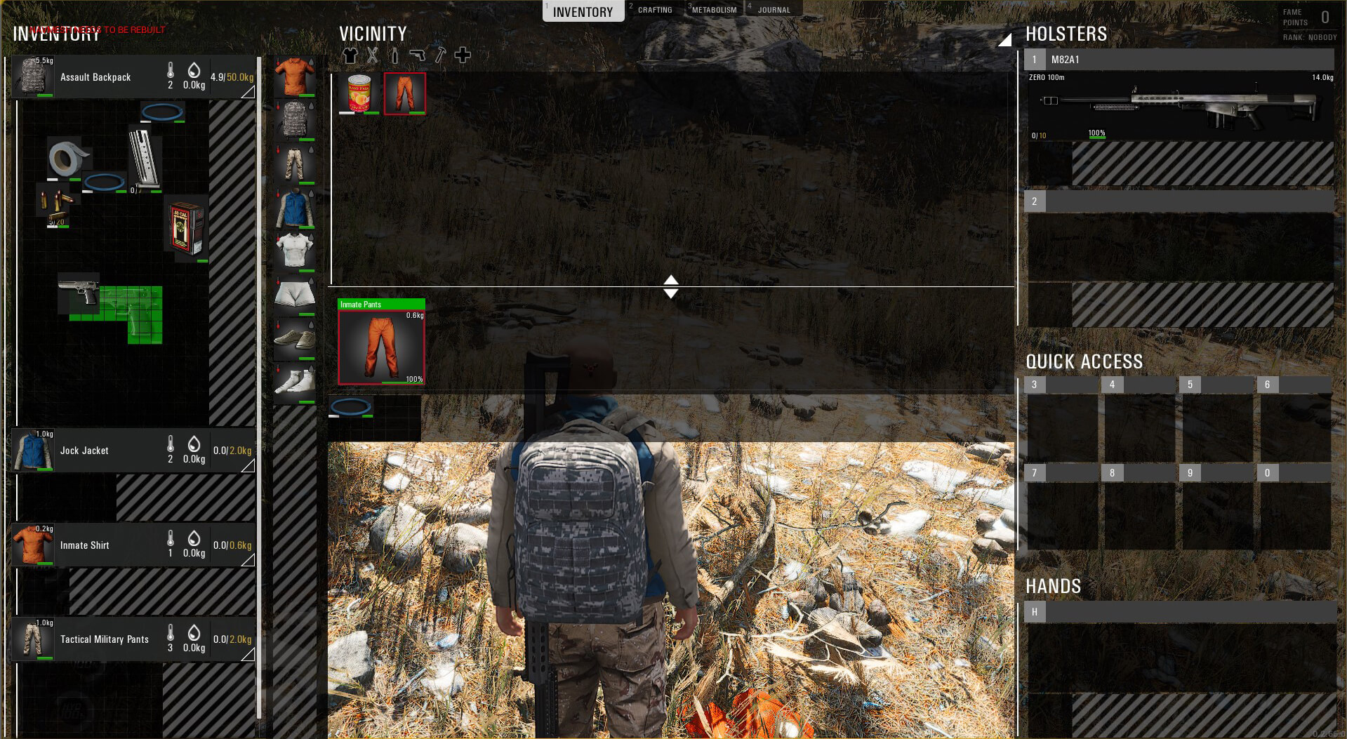 Wir haben außerdem das Layout des Inventars überarbeitet. Wenn ihr die Registerkarte "Umgebung / Vicinity", die sich in der Mitte des Bildschirms befindet, nach unten zieht, kann sie bei Bedarf vergrößert werden.