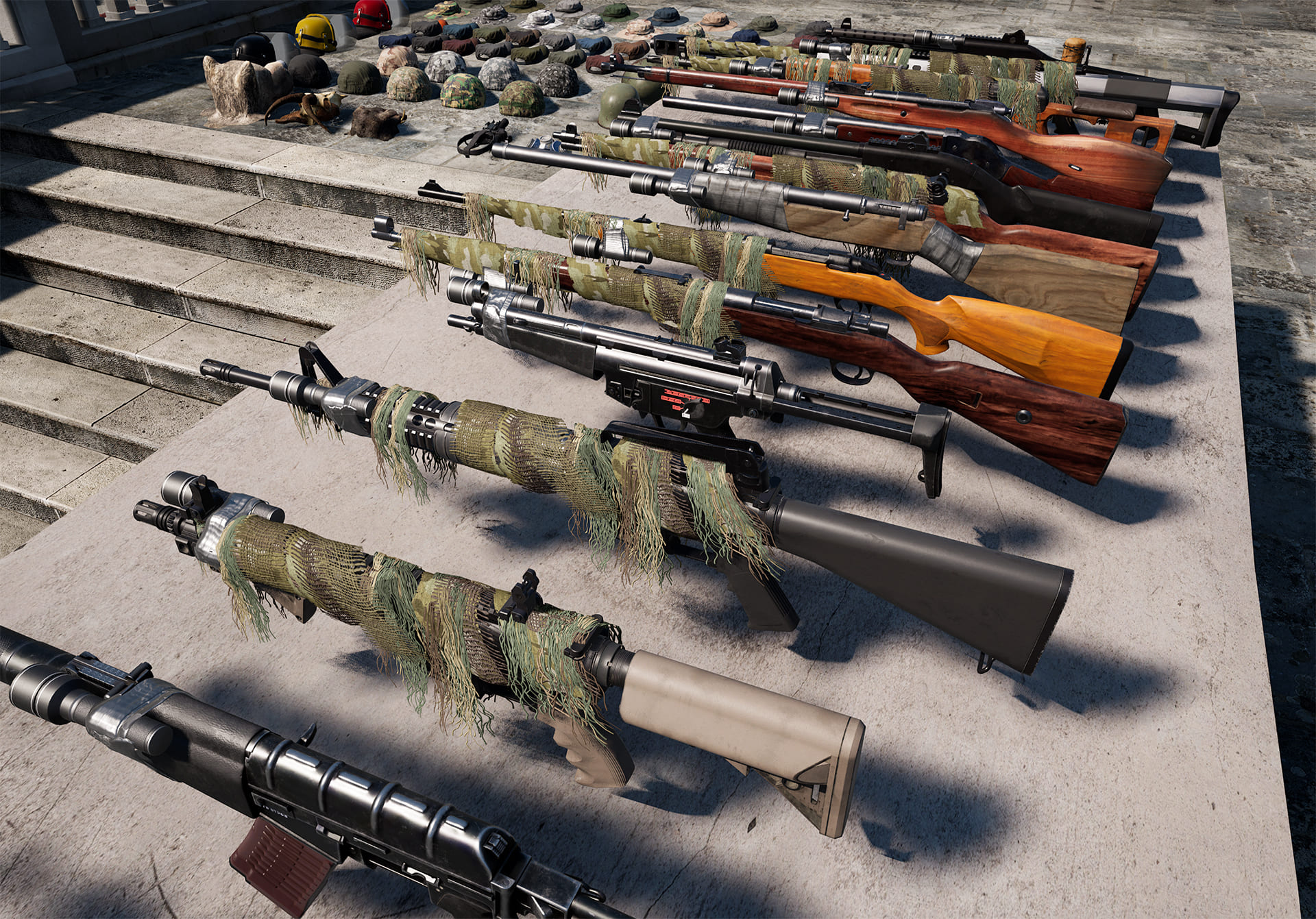 Waffenstörungen, darüber haben wir gesprochen. Es hätte mit dem City-Update live sein sollen, aber wir sind auf einige Probleme damit gestoßen. Es kommt gut voran und wir arbeiten außerdem auch an Waffenholstern und Ghillies, hier ein paar Bilder: