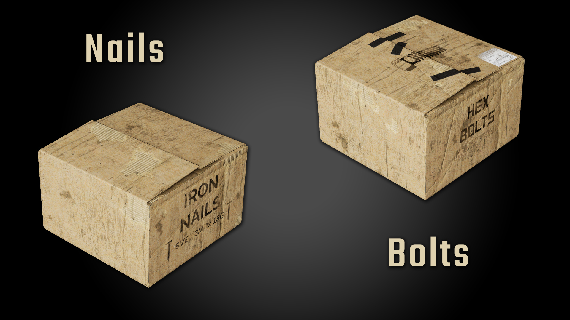 - 2 neue Gegenstände hinzugefügt, Schachtel mit Nägeln und Schachtel mit Schrauben. Jedes enthält 20 Stück.