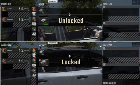 Zusätzlich dazu lassen sich nun Kisten und Autos absichern! Außerdem gibt es ein paar visuelle Änderungen, die den Zustand (ob abgeschlossen oder nicht) anzeigen.