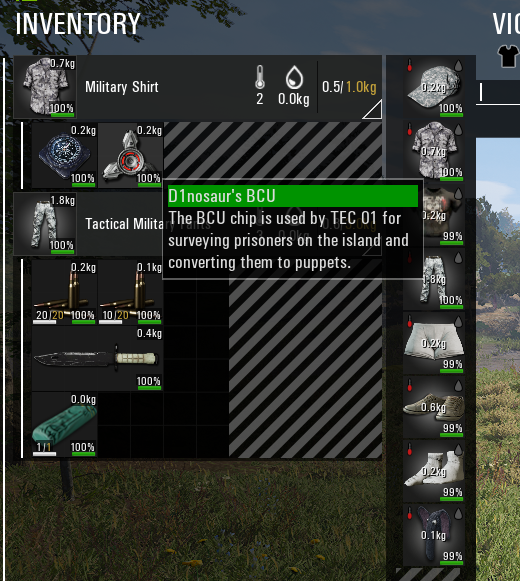 - Kleidung verfällt schneller, je nachdem, ob sie nass ist, in welcher Haltung ihr euch bewegt, wie schnell ihr seid, wie schwer ihr seid, wie schwer die enthaltenen Inventargegenstände sind usw.