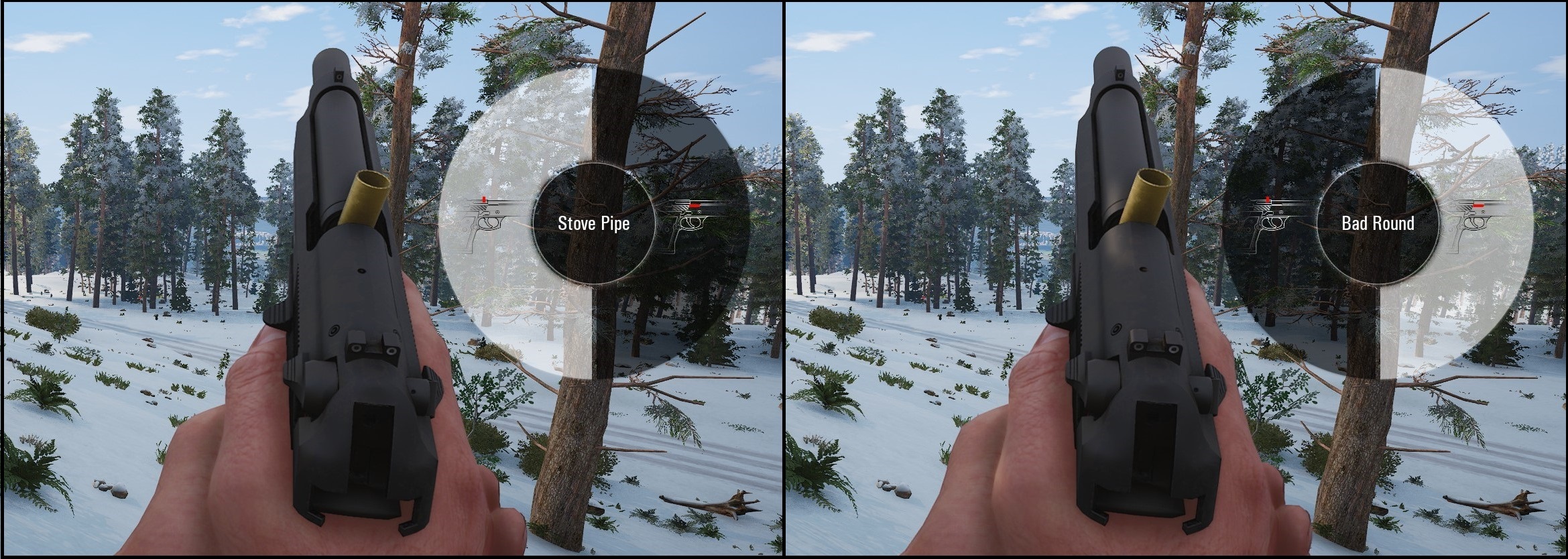 Beim Abfeuern und/oder Nachladen der Waffe besteht die Möglichkeit einer Fehlfunktion. Diese Chance erhöht sich, wenn sich entweder deine Waffe, das Magazin oder die Kugeln in einem schlechten Zustand befinden. Also halte alles sauber, halte es in Ordnung.