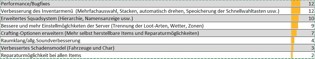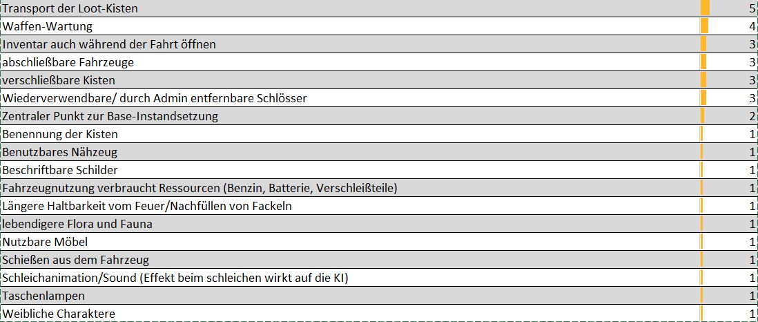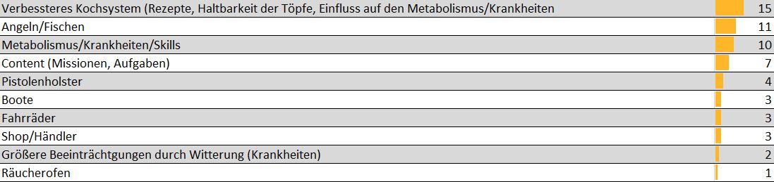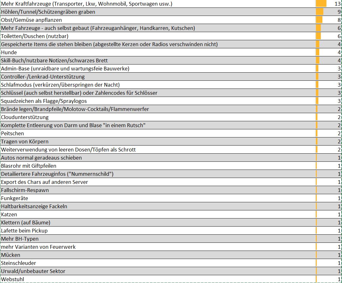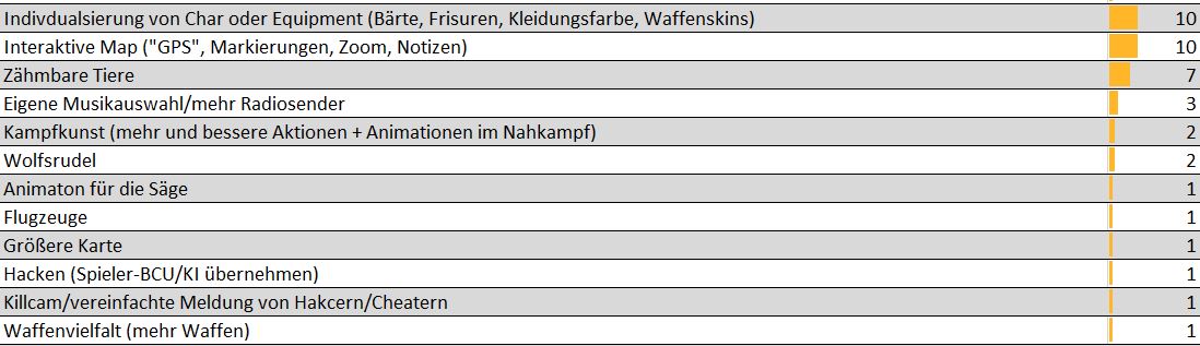 Die durch die orangenen Balken unterstützten Zahlen zeigen an, wie häufig der Wunsch geäußert wurde.