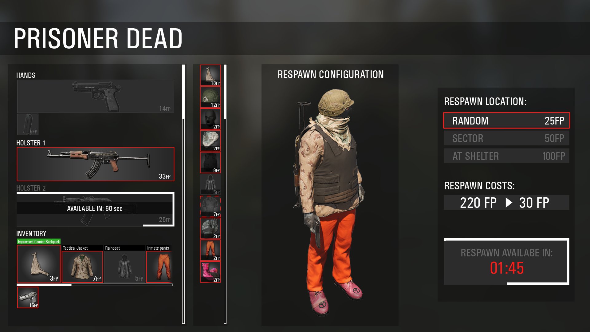 Das die Entwickler von SCUM auch an diversen Verbesserungen und Änderungen bestehender Systeme arbeiten, ist nichts neues. Tomislav Pongrac (Co-Founder und Creative Director bei Gamepires) hat nun ein neues Konzept für den Respawn-Screen auf Twitter veröffentlicht, woran sie momentan arbeiten. Die Idee dahinter ist, den Spielern die Option zu geben, einen Teil ihrer Ausrüstung zurückzubekommen, falls sie getötet werden, indem einige der verdienten Ruhmpunkte geopfert werden.