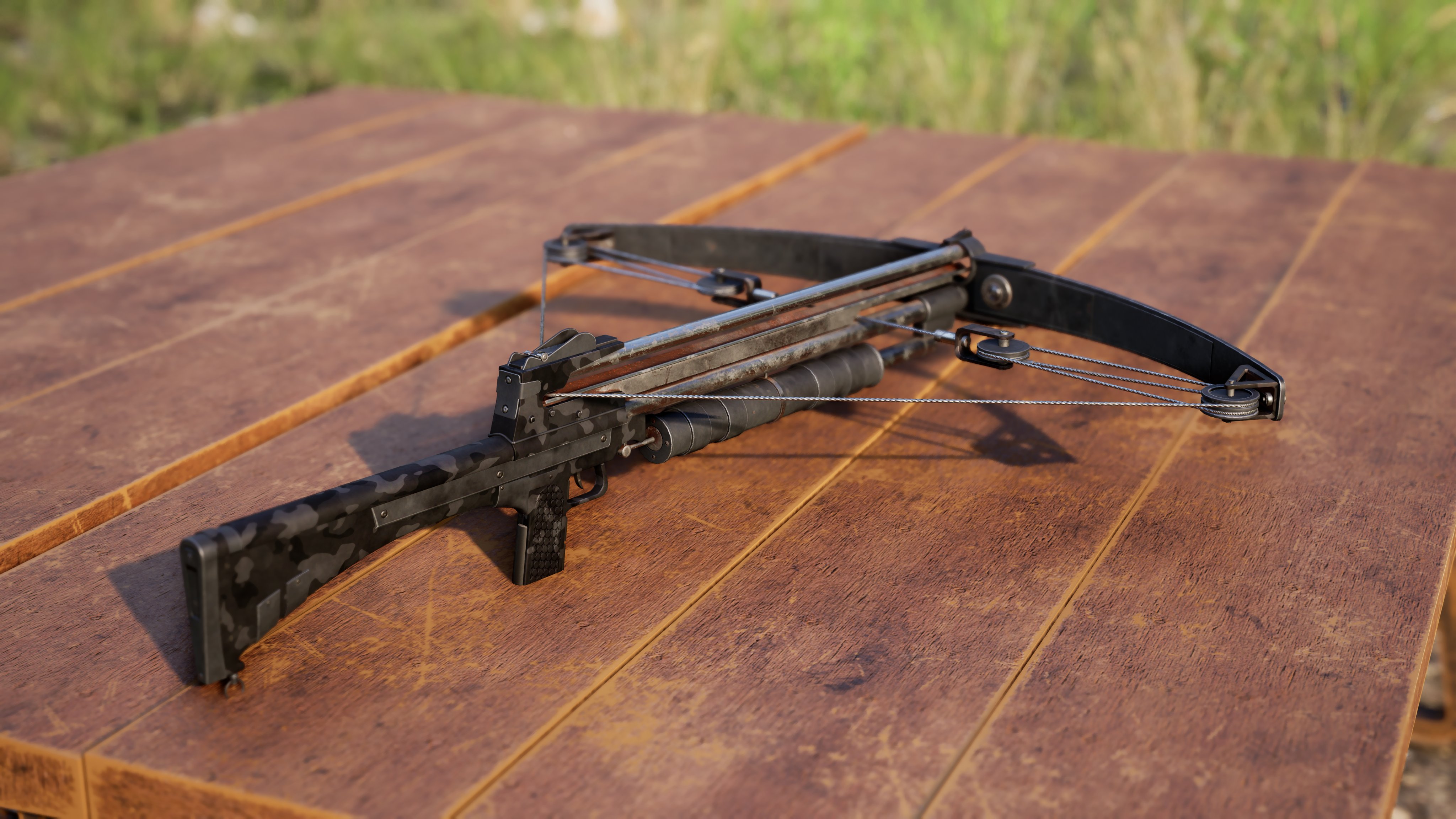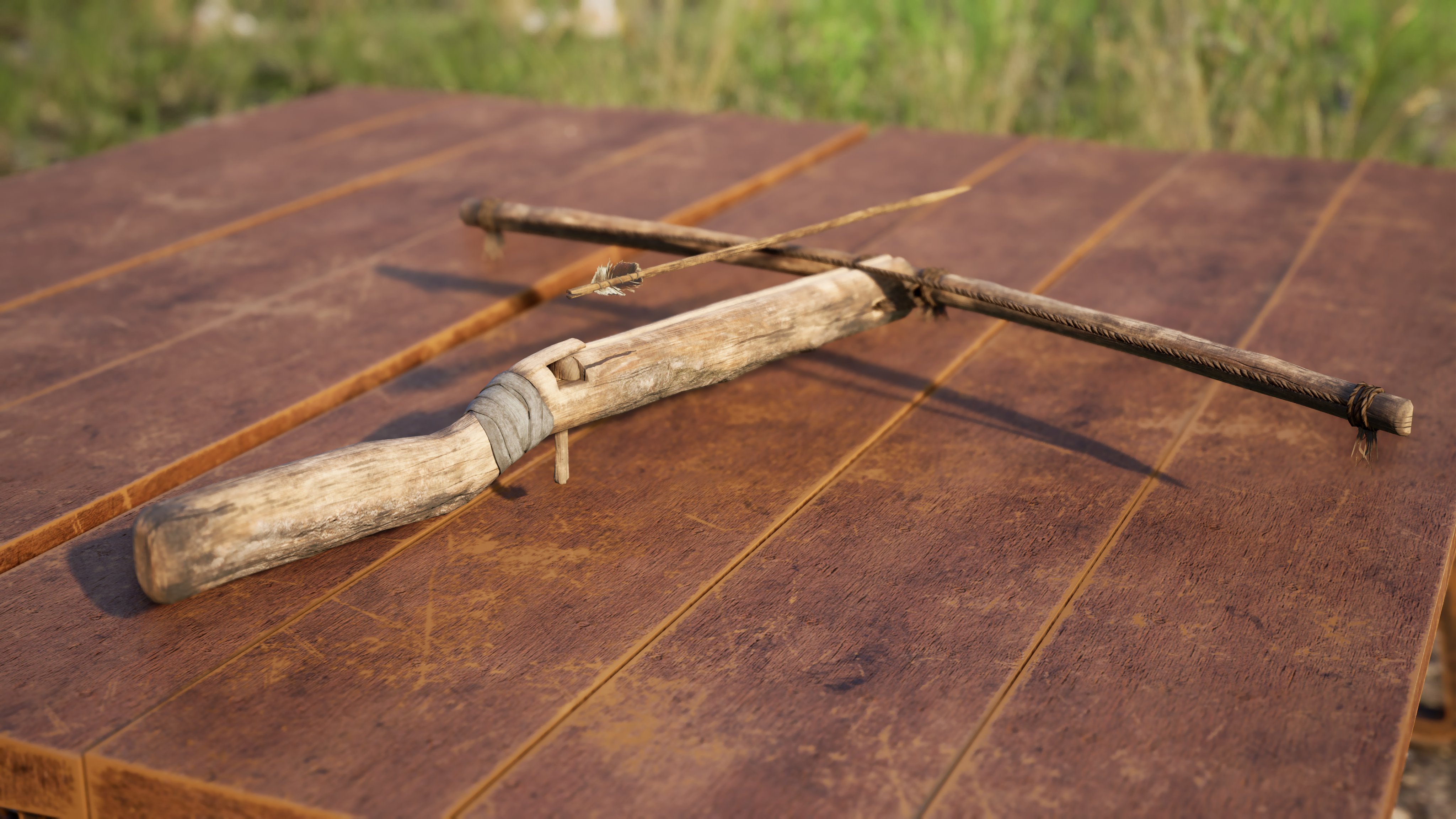 Zugegeben: Die Armbrüste sind nicht neu. Sie wurden schon Anfang des Jahres vorgestellt. Unter anderem in einem Dev-Blog Beitrag (der auch die M1887 angedeutet hatte). Diesen könnt ihr hier finden. Zusätzlich wurde im Februar nochmals die Armbrust unter die Lupe genommen, als es einen ausführlichen WIP-Post mit Tena gegeben hat. Sie hatte damals den Pickup, Gebäude für Städte, die Kohlemine und viele weitere Gegenstände gezeigt.