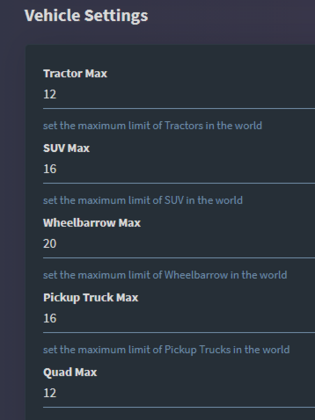 Die Game-Server Einstellungen für SCUM wachsen und werden durch neue Fahrzeug-Einstellungen ergänzt. Man kann demnächst festlegen, wie viele Traktoren, SUVs, Pickups, Quads oder auch Schubkarren in der Welt von SCUM maximal erscheinen können, wie ein kürzlich veröffentlichter Leak zeigt: