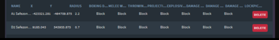 Hier seht ihr die Übersicht eurer Safzones und könnt die Safezone auch wieder löschen.