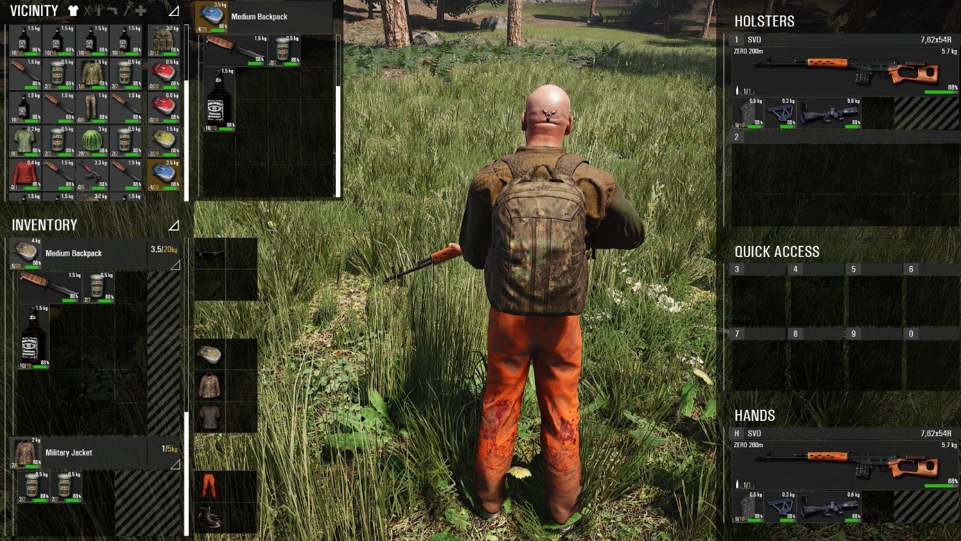 Vielleicht habt ihr das neue Automodell in unserem letzten WiP-Beitrag gesehen. Unser Chefprogrammierer Dini arbeitet an der neuen und verbesserten Autophysik. Im Moment sind die Fahrzeugmechaniken im Spiel noch sehr einfach. Wir werden versuchen, mehr in Richtung Realismus zu gehen. Beispielsweise verschiebt sich der Schwerpunkt des Fahrzeugs abhängig von der Anzahl der Personen im Auto. Dini überarbeitet auch das Schadenssystem. Das bedeutet, dass das Auto unterschiedlich reagiert, je nachdem, ob Sie auf den Reifen oder den Motor geschossen haben. Macht euch aber keine Sorgen, denn ihr könnt es auch reparieren. Ihr erhaltet auch die Fahr- und Fertigkeitsstufen, die sich auf den gesamten Realismus und die Art und Weise beziehen, wie ihr das Auto fahrt. Ihr könnt ein Auto beanspruchen, es abschließen, es auswählen und per Kabel kurzschließen. Ihr könnt es auch tanken. Dini sagt, dass ihr irgendwann auch aus dem Auto schießen könnt (aber nicht in den nächsten 3 Monaten). Der Grund dafür ist, dass es ein langer und quälender Prozess ist, der lange Zeit in Anspruch nehmen wird. Er hat genug auf dem Teller, und nichts davon hängt mit Salat zusammen.
