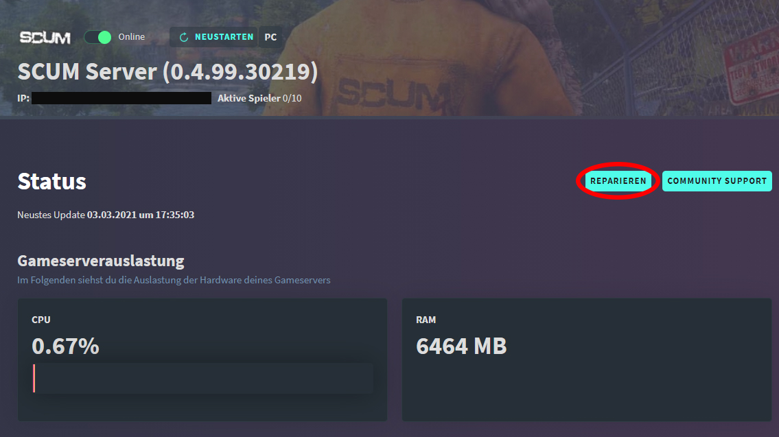 SCUM Server unter Nitrado und Gportal zurücksetzen