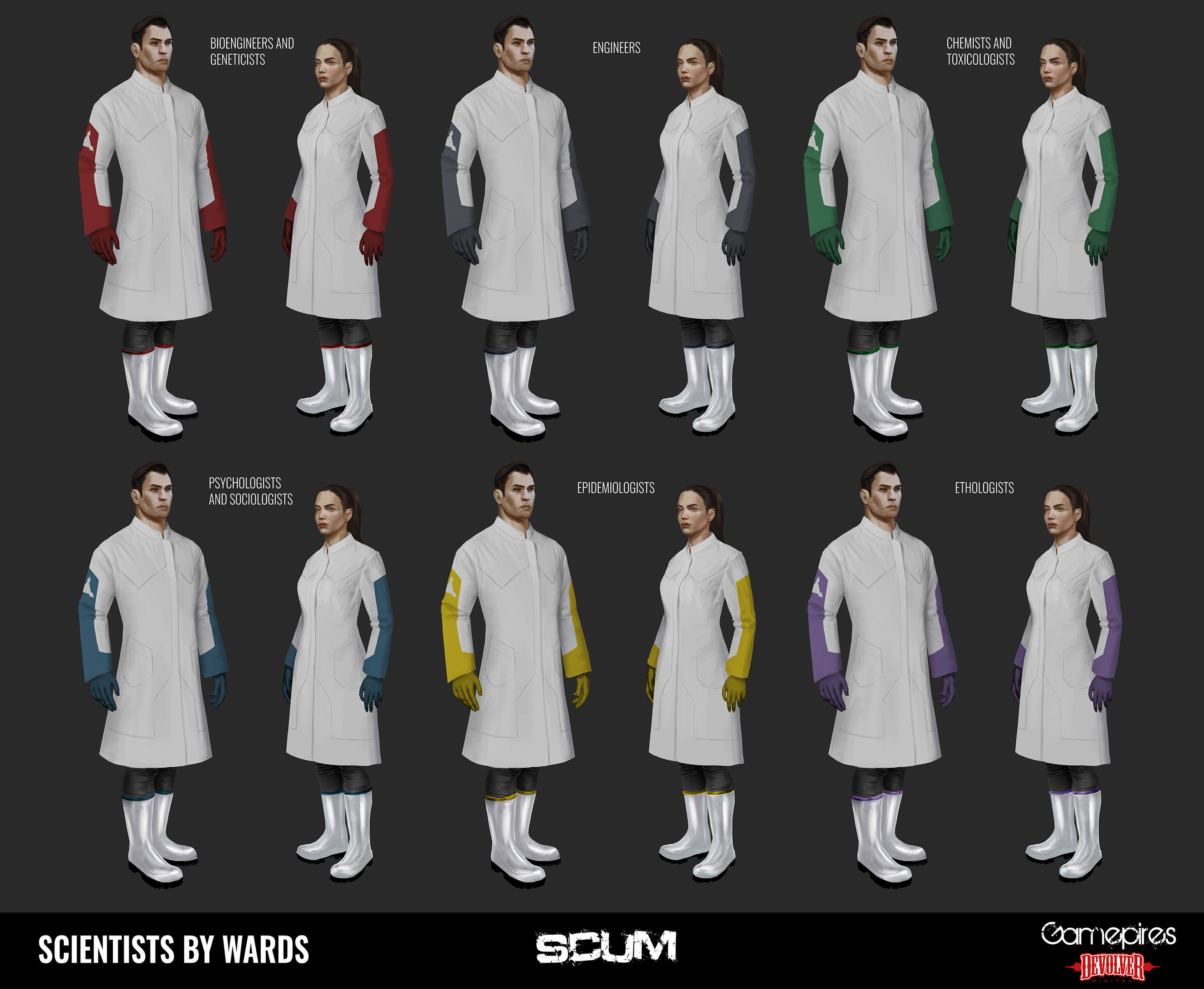 Ivona: Dies sind die TEC1-Wissenschaftler, bei denen jede Farbe eine bestimmte Station darstellt. Ich wollte, dass sie futuristisch und wissenschaftlich aussehen, aber dennoch an die vergangenen Modetrends erinnern.