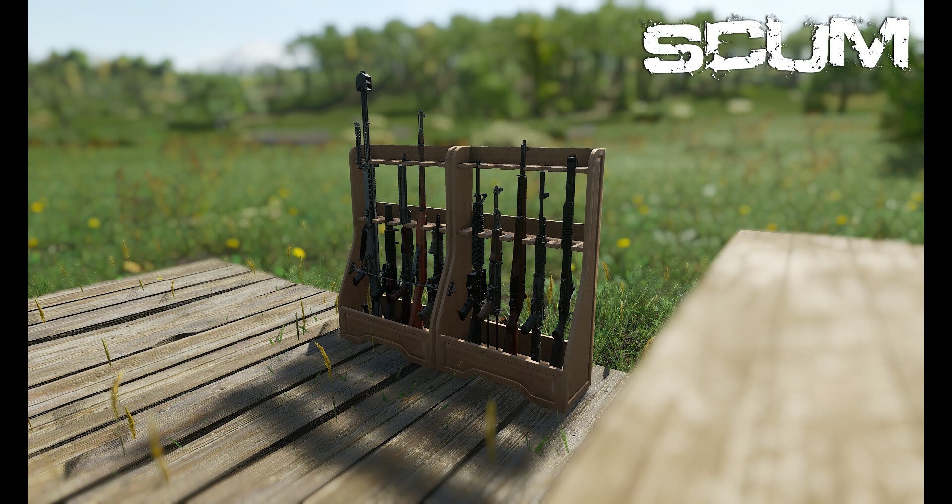 Also gut ihr Waffennarren. Wir haben eure Wünsche gehört, euer Arsenal zu zeigen oder die Möglichkeit zu haben, schnell nachzuladen, wenn ihr angegriffen werdet. Also haben wir die Waffenständer hinzugefügt.