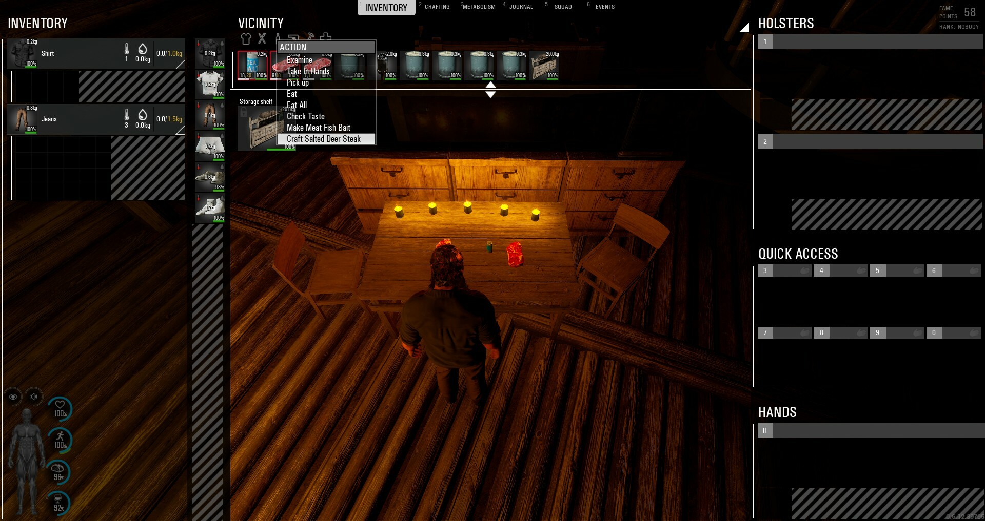 Deshalb haben wir eine neue Funktion eingebaut, mit der du Fleisch salzen kannst, damit es länger haltbar ist! Alles, was du brauchst, ist ein bisschen Salz, ein Stück Fleisch und einen Schlag. Ein kleiner Liebesbeweis. In Wirklichkeit musst du nur Salz und das gewünschte Fleisch auswählen, dann ein einfacher Rechtsklick und schon hast du gesalzenes Fleisch!