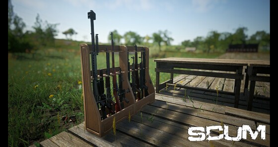 Baue einfach einen oder mehrere davon. Wenn du willst, kannst du deine Lieblingswaffen ausstellen und sie immer dicht bei dir haben. Du kannst die Ständer sogar abschließen und es wird visuell eine Kette erscheinen, die deine kleinen Freunde sicher hält.