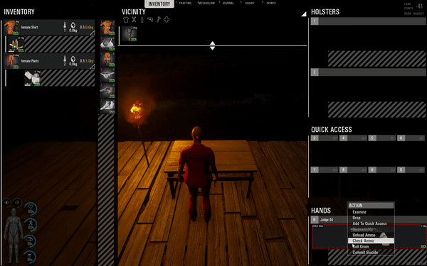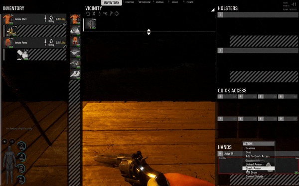 Als Nächstes kommt etwas, das wir schon seit den ersten Gesprächen über Revolver machen wollten und das auch von euch gewünscht wurde. Ihr könnt jetzt russisches Roulette mit den Revolvern spielen. Der Vorgang ist wirklich einfach! Als Erstes ladet ihr eine Patrone in den Revolver. Dann klickt ihr mit der rechten Maustaste ins Inventar und wählt Trommel rollen.
