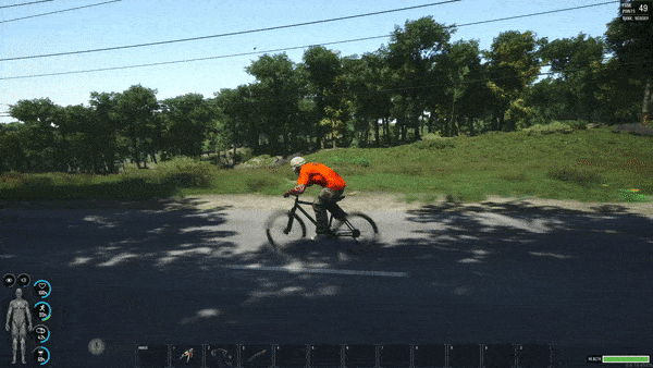 Ihr könnt nun erkennen, dass eure Spielfigur je nach Geschwindigkeit, mit der ihr in die Pedale tretet, die Position auf dem Fahrrad anpasst, um die Geschwindigkeit zu maximieren. Wir haben auch die Höchstgeschwindigkeit des Fahrrads angepasst, was es zu einem viel nützlicheren Fahrzeug für die Fortbewegung auf der Insel macht. Nicht nur das, wir haben auch die Physik der Fahrräder angepasst, um sie realistischer zu machen. Ein Ergebnis ist, dass man nicht mehr in die Pedale treten muss, um vorwärts zu kommen, wenn man bergab fährt.