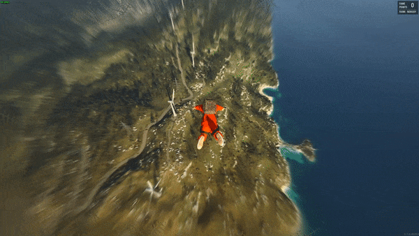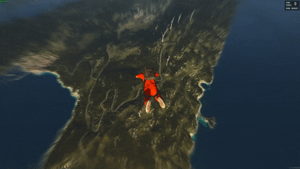 Nun, sobald ihr fallt, könnt ihr das Scrollrad benutzen, um verschiedene Posen in der Luft einzunehmen, die eure Fallgeschwindigkeit verlangsamen oder erhöhen, und ihr könnt WASD in den Posen benutzen, um den freien Fall halbwegs zu kontrollieren.