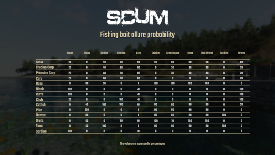 Zu Beginn haben wir uns eingehender mit unserer Angelumgebung befasst. Jeder erfahrene Angler wird euch sagen, das es mehrere Faktoren gibt, um einen bestimmten Fisch zu angeln. Es macht also Sinn, dass wir das auch in SCUM einbauen. So gibt es nun mehrere Faktoren, die ihr beim Angeln berücksichtigen müsst: