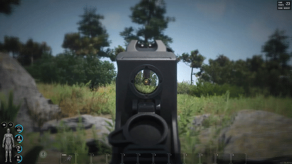 Und ja, bei der integrierten Rotpunktversion könnt ihr zwischen den Visieren wechseln: