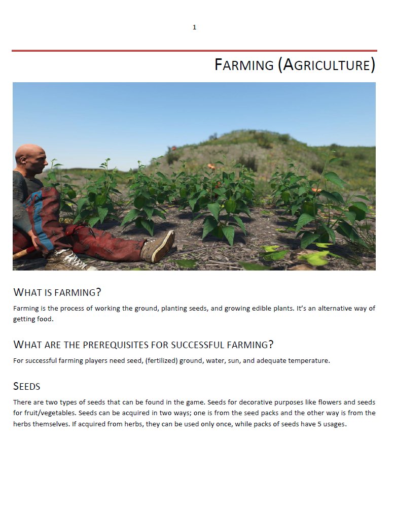 Die Fertigkeit "Landwirtschaft" bestimmt, wie gut jemand im Anbau von Pflanzen ist, aber auch im Umgang mit Tieren. Der Skill gibt bestimmte Boni für Spieler mit besseren Fähigkeiten. Wir werden Tiere und Pflanzen separat behandeln. Farming fällt unter den Baum der Intelligenz-Fertigkeiten.