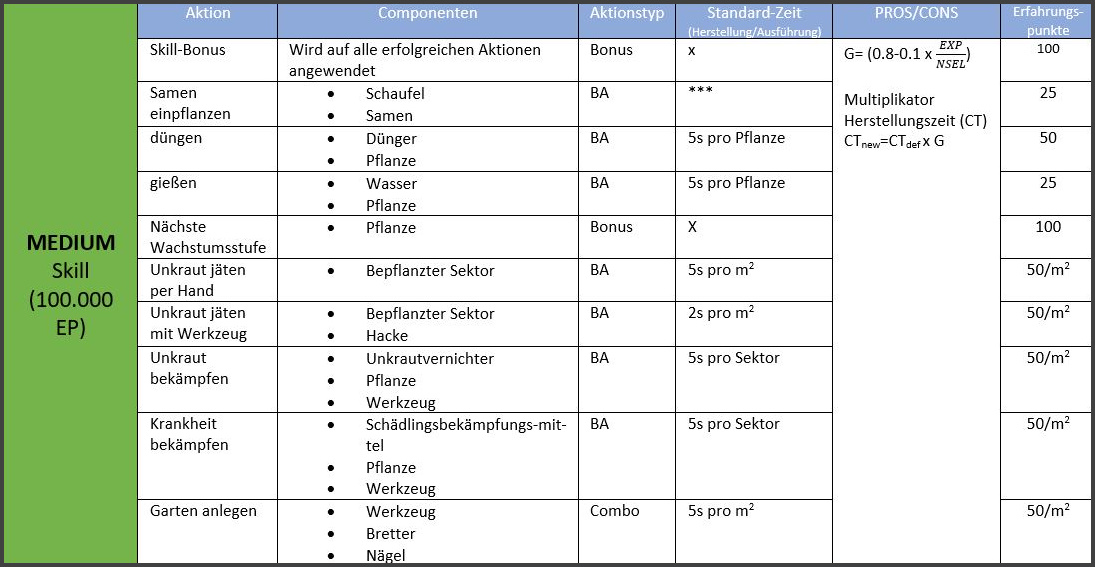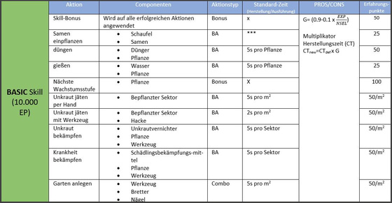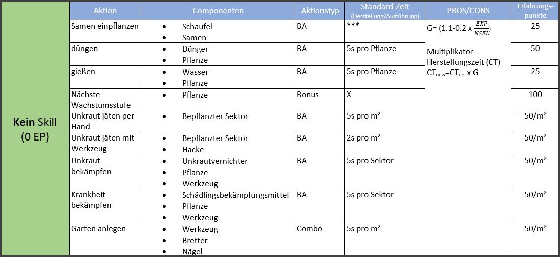 Ein Char ohne Skill mit Stärke 1 wird also 55 Sekunden benötigen, um einen Samen in die Erde zu bringen