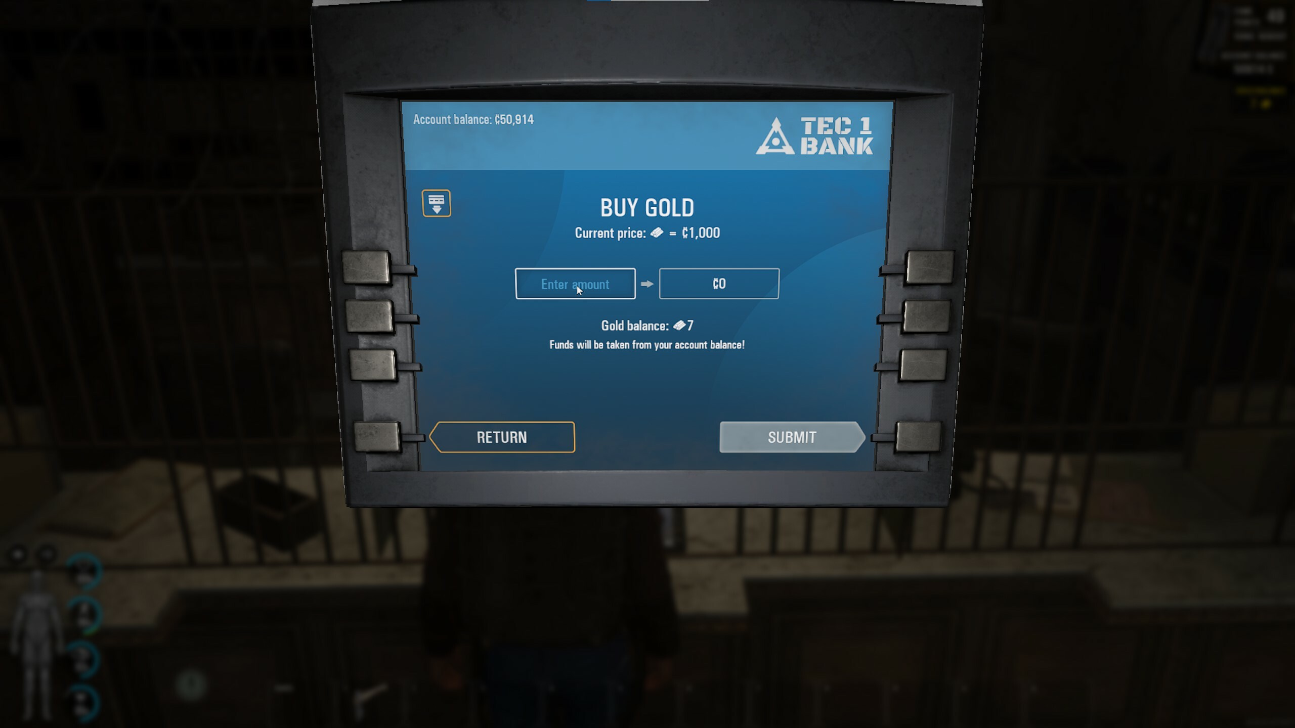 Die Goldankaufskapazität legt fest, wie viel Gold ein Bankier kaufen kann. Wenn diese Zahl 0 erreicht, kann der Bankier kein Gold mehr kaufen. Für jede Verringerung der Ankaufsfähigkeit um 10 % senkt der Händler den Ankaufspreis für Gold um 2 %. Die Gesamtzahl der Goldeinheiten, die beim Bankier gekauft werden können, und die Regenerationsrate der Goldeinheiten werden durch den "Wirtschaftsstatus des Außenpostens" bestimmt. Mit anderen Worten: Je mehr Spieler die Dienste des Außenpostens in Anspruch nehmen, desto höher ist sein Wirtschaftsstatus.