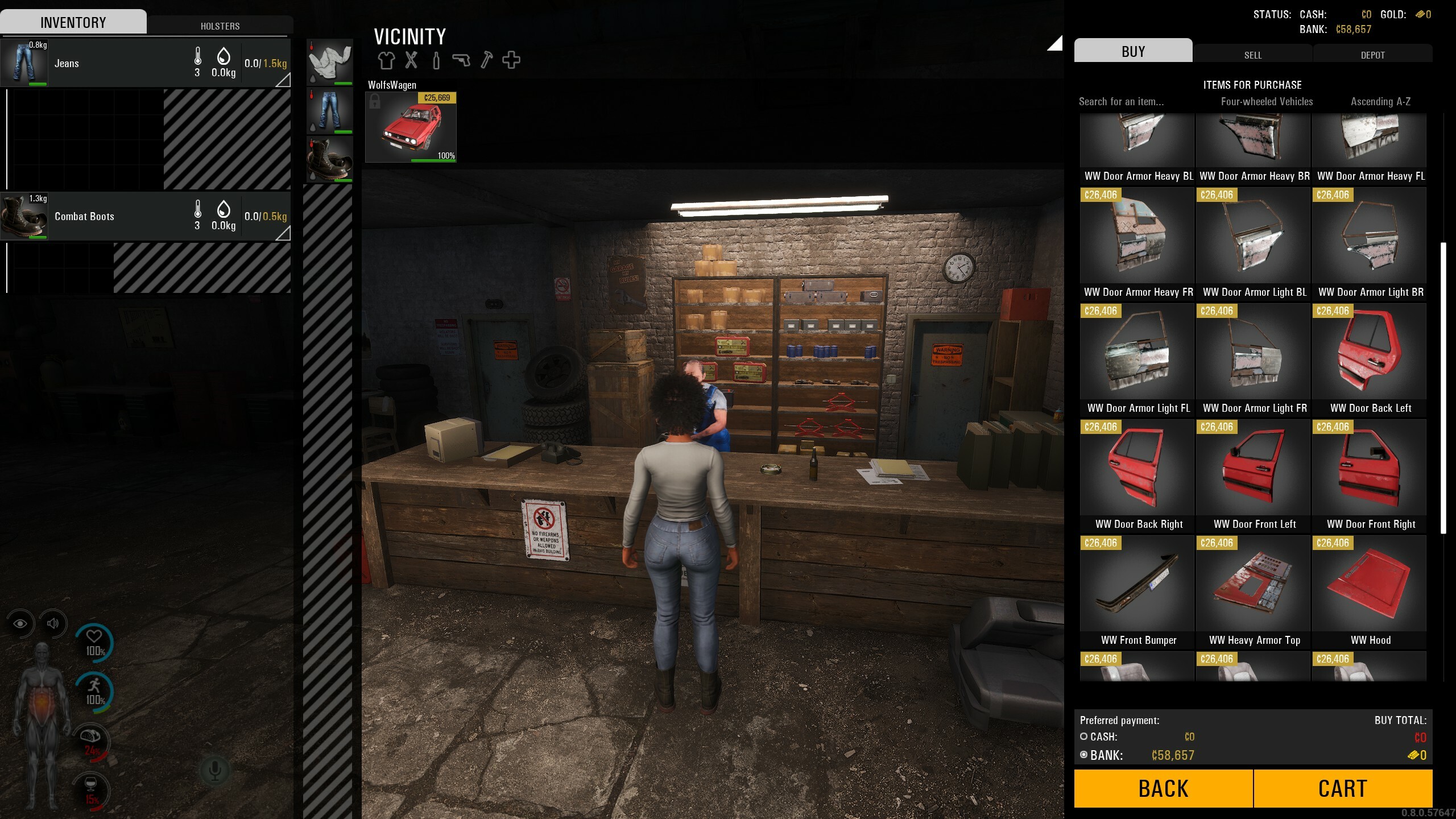 Alle fehlenden Teile können entweder in der Welt geplündert oder in der Autowerkstatt gekauft werden. Gepanzerte Upgrades können nur über den Automechaniker bezogen werden.