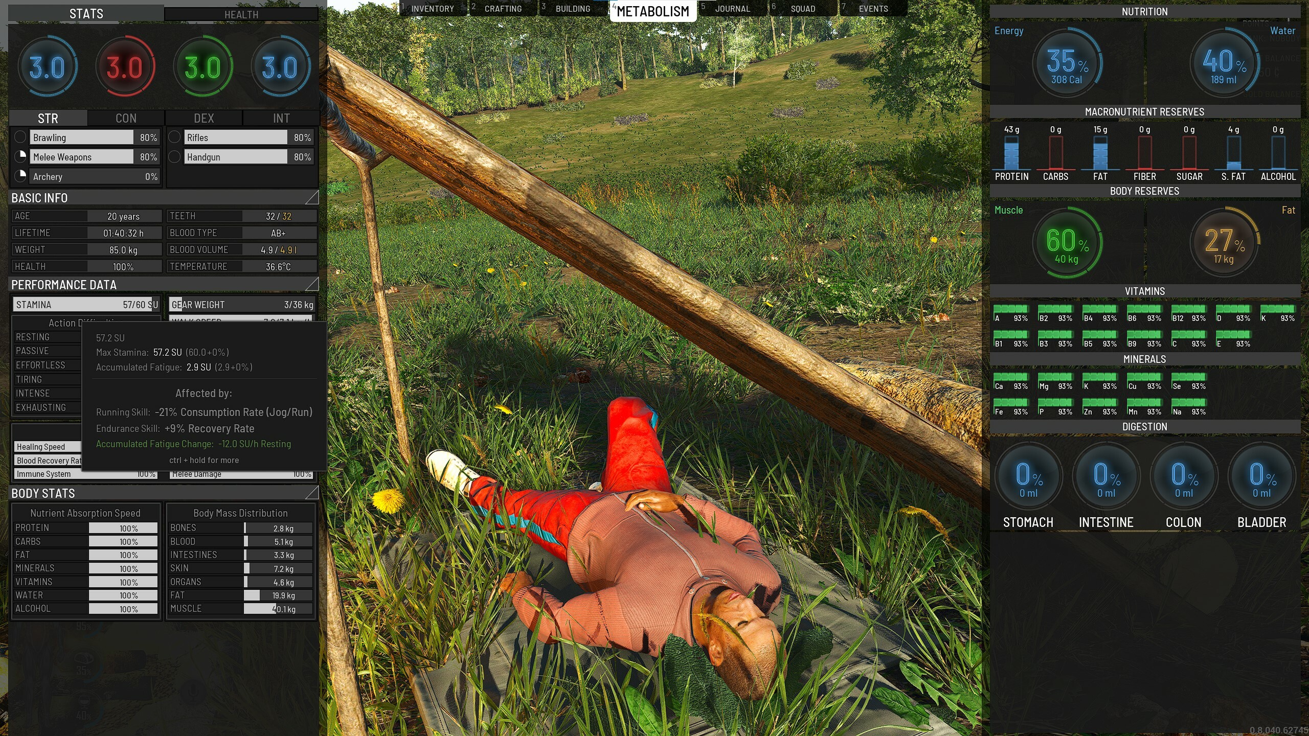 Beginnen wir mit dem MSI, der für den maximalen (ursprünglichen) Ausdauerwert steht. Bisher wurde der MSI durch viele Dinge wie Krankheiten, Wunden usw. beeinflusst, Jetzt wird er auch durch die angesammelte Müdigkeit beeinflusst. Wir nennen das MSR oder maximale Ausdauerreduktion.