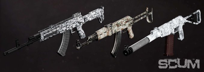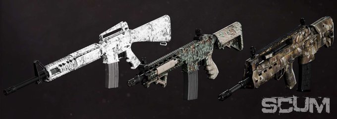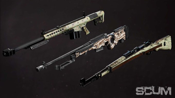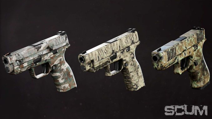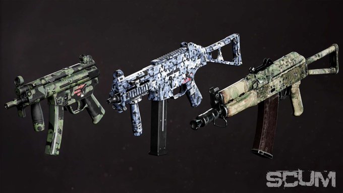 Ihr werdet demnächst in der Lage sein, eure Waffen an die bestimmten Gegenden weiter anzupassen. Dafür arbeiten die Entwickler von SCUM an sogenannten Waffenskins, genau genommen an 15 neuen Mustern. Noch ist aber unklar, ob diese mit einem neuen DLC kommen werden oder eben nicht. Auch, in welcher Form man sie dann erhalten kann. Hier einmal die Leaks der letzten Tage dazu. Lasst eurer Kreativität freien Lauf und schreibt gerne eure Meinung dazu rein! PS: Ja auch an anderen Dingen wird fleißig gearbeitet, schaut da einfach bei Tomislav auf Twitter vorbei.