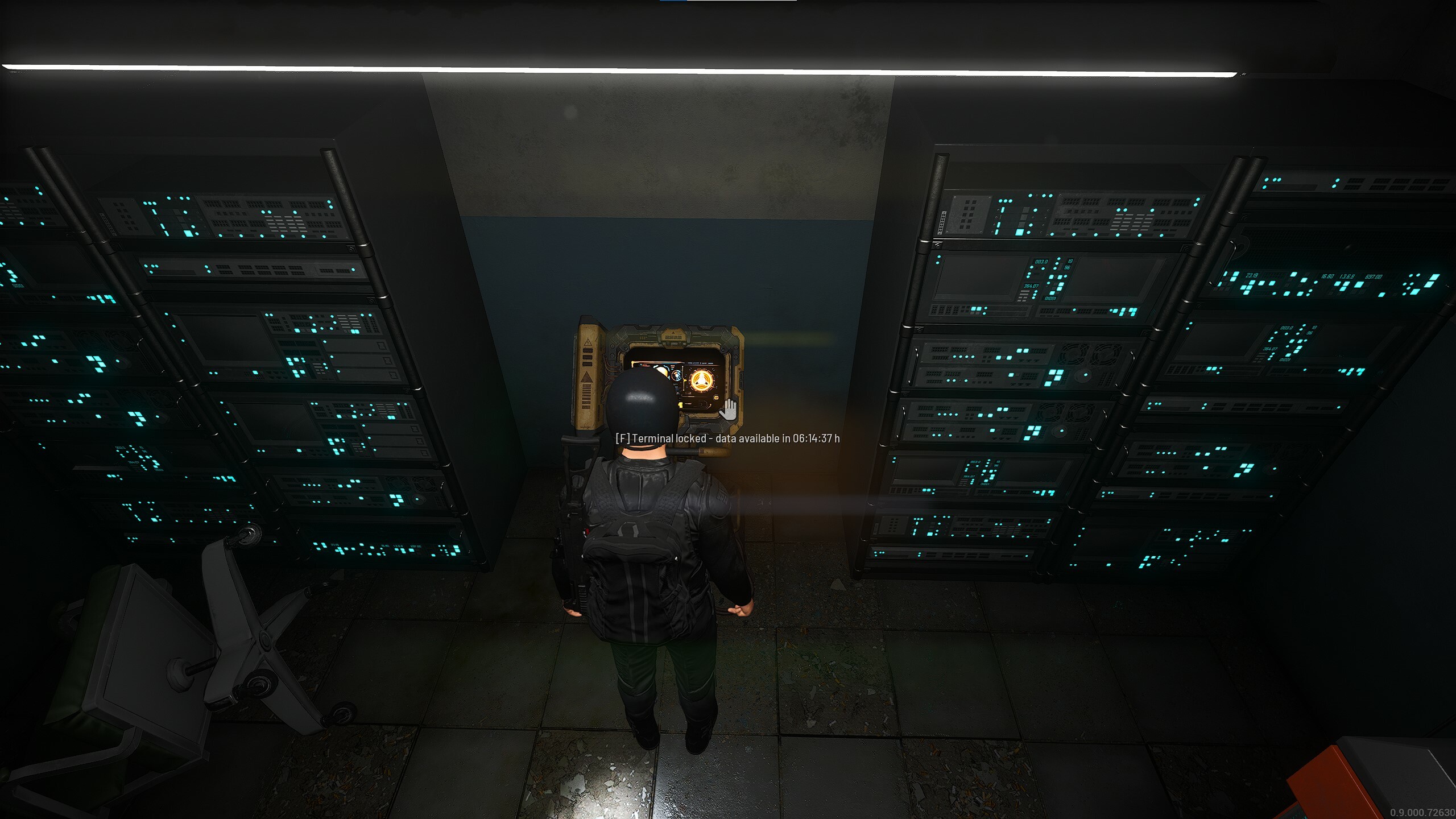 Lasst uns die neue Mechanik des Hackens erklären. In den neuen Bunkern könnt ihr versuchen, euch durch die Tür zu hacken, wenn ihr die entsprechende Schlüsselkarte nicht habt und die Tür mit Strom versorgt wird (dazu später mehr). Haltet die Interaktionstaste ("F") an der Tür gedrückt und ihr werdet die Option sehen. Sobald ihr sie auswählt, erscheint dieser Bildschirm: