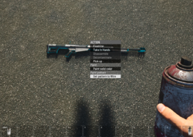 Du kannst JEDE Farbe der Sprühfarben finden und deine Waffe in dieser speziellen Farbe lackieren, wie auf den Bildern unten gezeigt: