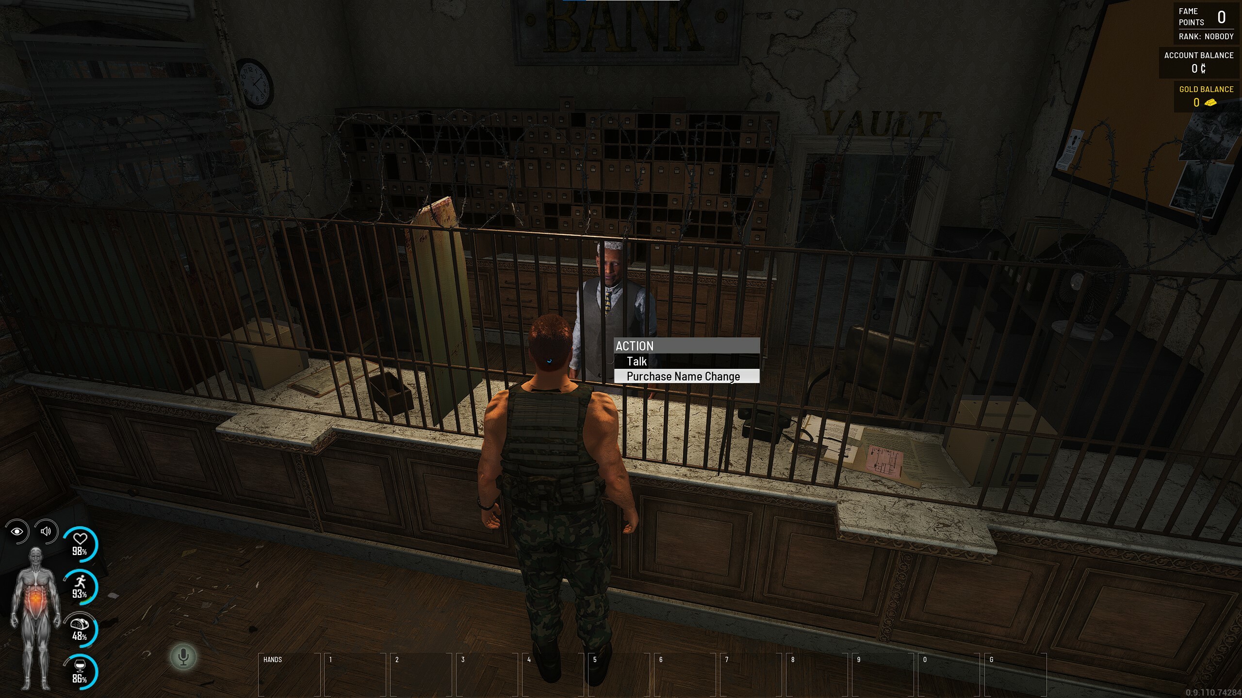 Ein Wunsch, der schon früher geäußert wurde, ist nun endlich erfüllt. Ihr könnt jetzt den Namen eures Charakters ändern, nachdem er erstellt wurde. Es wird allerdings nicht kostenlos sein, also bereitet eure SCUM-Karte vor. Um euren Namen zu ändern, müsst ihr zum Banker gehen. Haltet dann die Interaktionstaste auf ihm gedrückt und ihr werdet die Option zur Namensänderung sehen.
