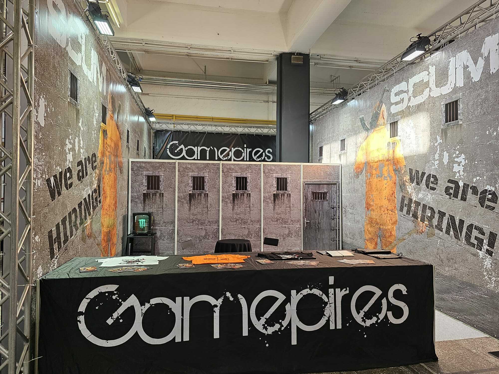 Wir hatten sogar eine große Verlosung auf der Bühne, bei der man alle SCUM-Goodies gewinnen konnte. Von T-Shirts, Taschen, Notizbüchern und sogar SCUM-Schlüsseln. Wer auch immer sie bekommen hat, ich hoffe, sie gefallen euch! Und am Ende gab es für die Superfans, die sich mit dem Spiel auskennen, sogar ein kleines Quiz, bei dem man die legendäre SCUM-Jacke gewinnen konnte!