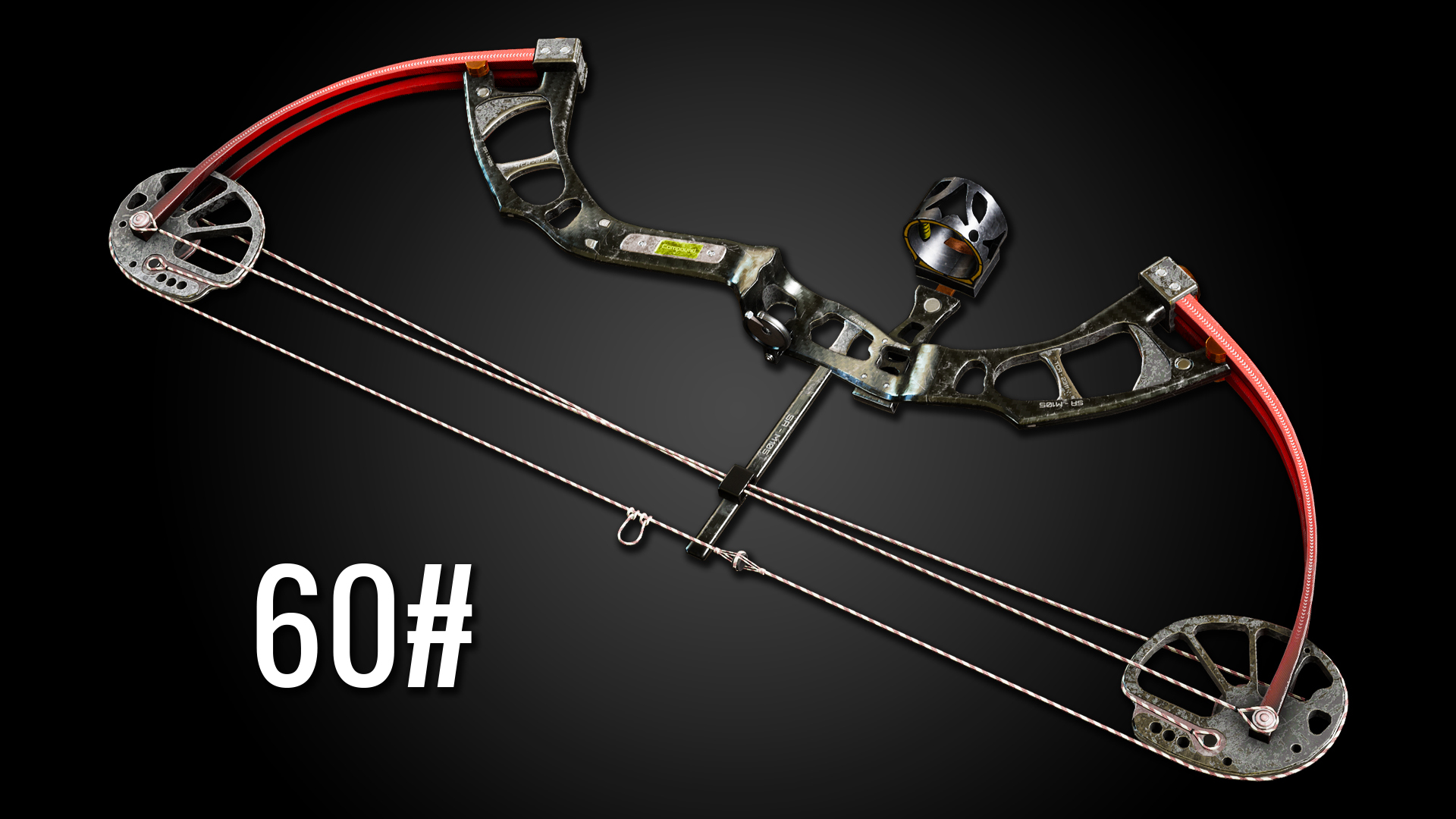 Der Compoundbogen hat ein Zuggewicht von 60 #. Sie können Visiere, Stabilisatoren und den Schalldämpfer anbringen.