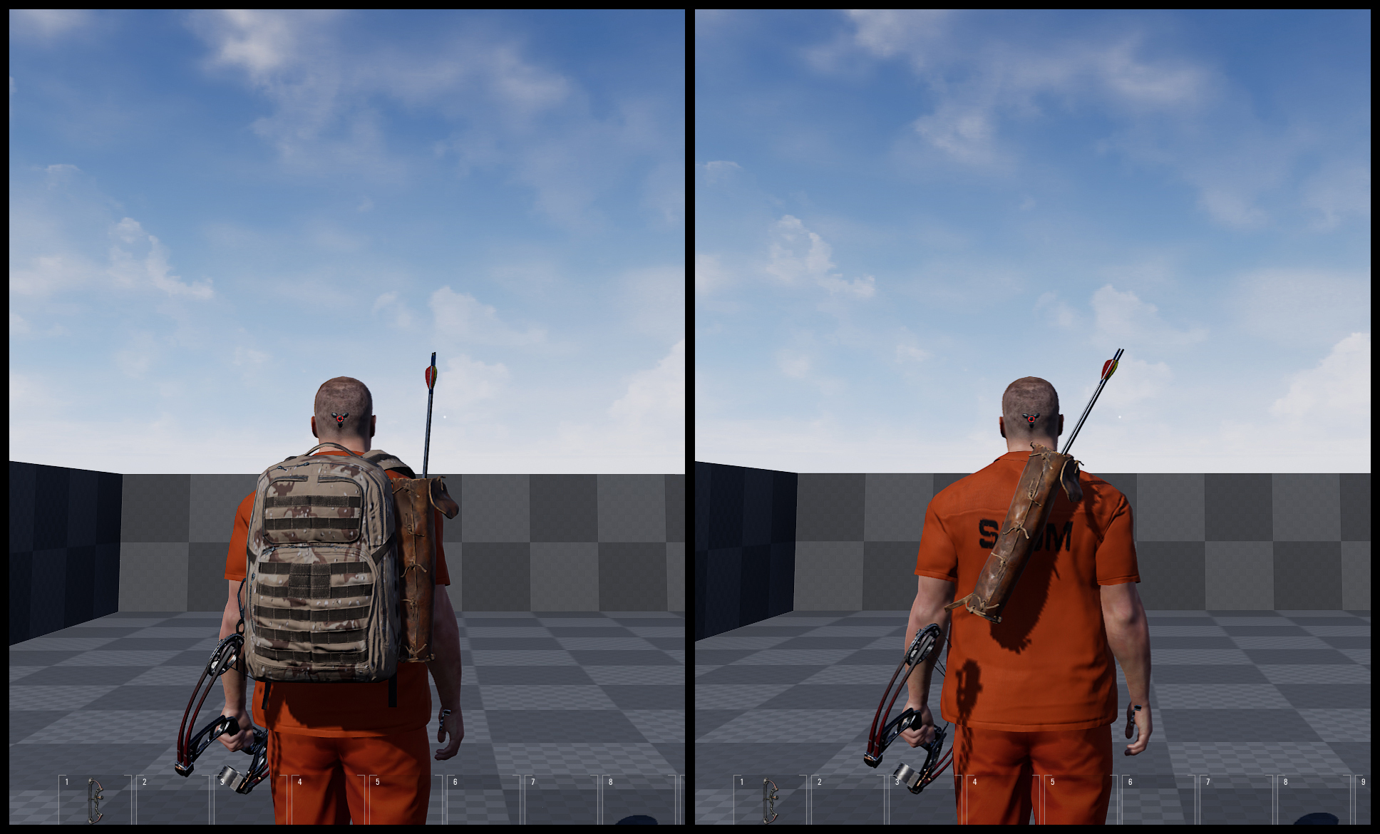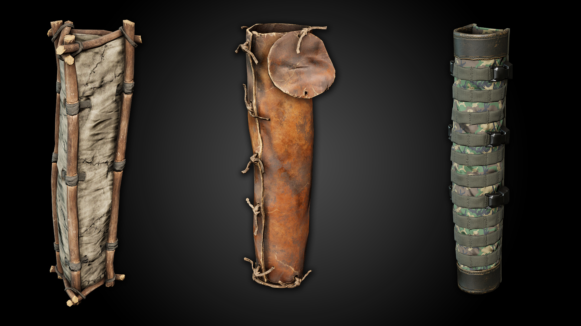 Wir fügen auch Köcher hinzu. Sie funktionieren wie folgt. Es gibt 3 Arten von Köchern: Improvisierter Köcher, Tierhautköcher und Militärköcher