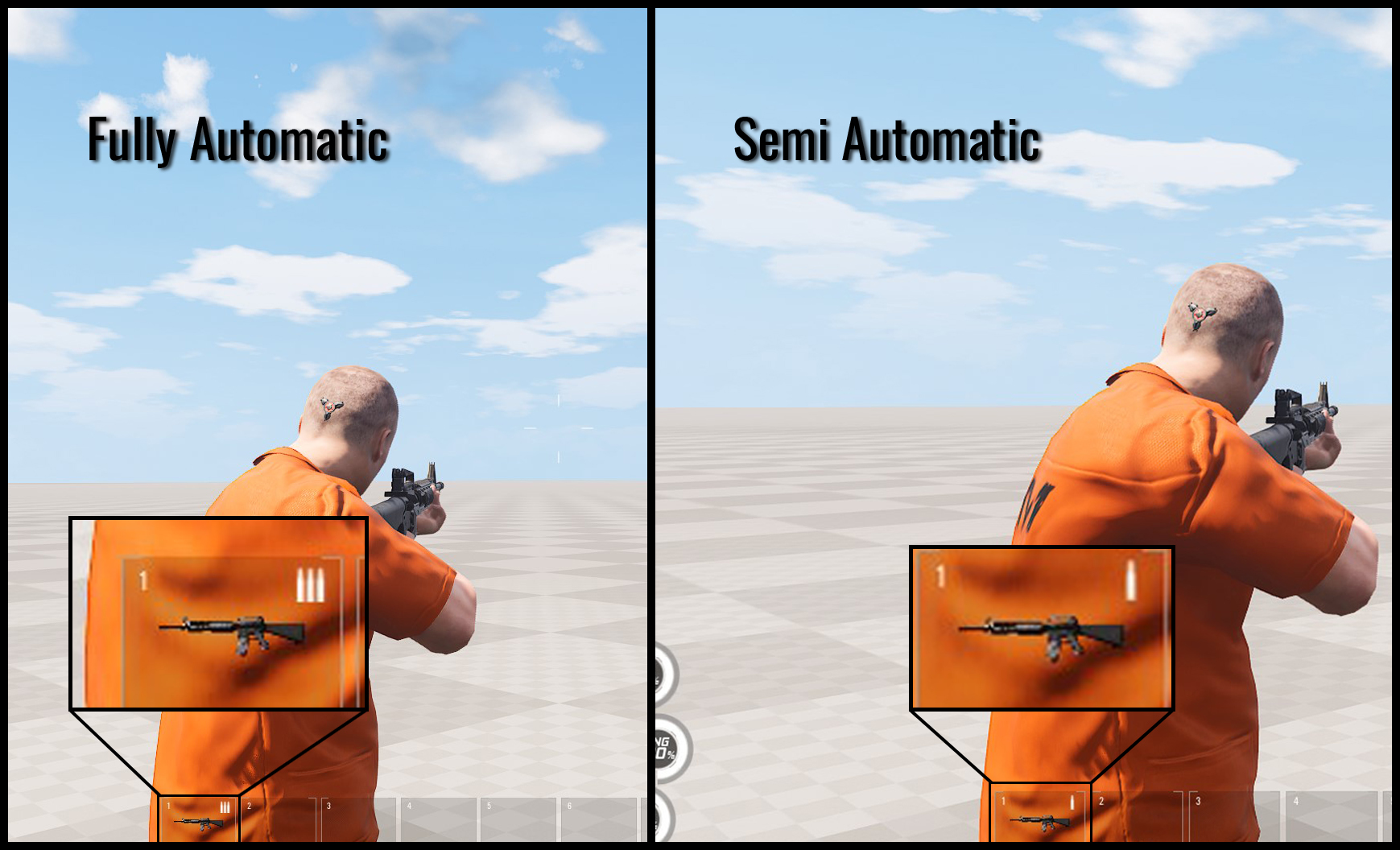 Ja, wir haben dich wie die wirklich ersten gehört. Aber ja, wir hätten dies etwas früher hinzufügen sollen. Aber du weißt, wie es in gamedev ist. Alles in allem können Sie jetzt über die Schnellzugriffsleiste sehen, in welchem Feuermodus sich die Waffen befinden.