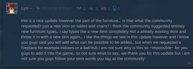 Nun zum Entwickler-Update. Leider habe ich diese Woche außer dem Text keine Sneakpeaks für euch. Die Hitze hat ihren Tribut vom Team gefordert und einige von ihnen sind ohnmächtig geworden.
